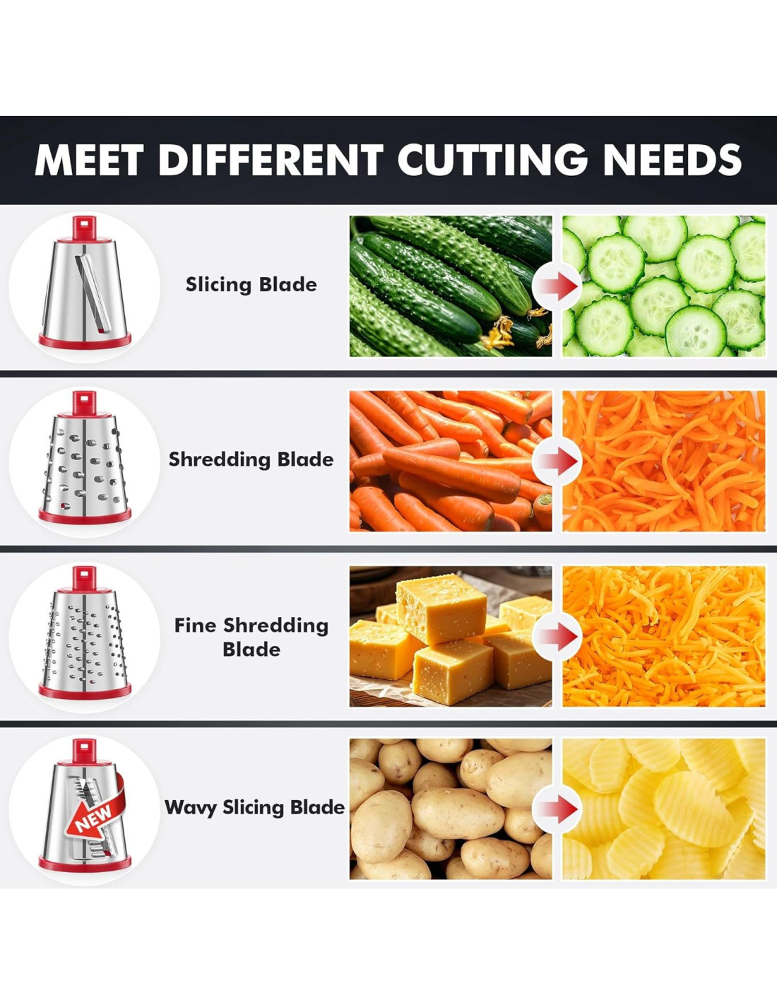 - Diseño Totalmente Mejorado: En comparación con modelos anteriores, este rallador de queso premium está completamente optimizado. La entrada y salida son un 30% más anchas, lo que facilita el manejo de la mayoría de las verduras sin cortar, aumentando así la productividad. Las cuchillas son más grandes y afiladas, cortando 18 veces más rápido que los ralladores de queso convencionales y entregando un 50% más de ingredientes por rotación para una mayor eficiencia. Las ventosas reforzadas son más grandes y estables en uso. Este rallador es más fácil y eficiente de usar, ahorrándote hasta la mitad del tiempo en la preparación de alimentos.