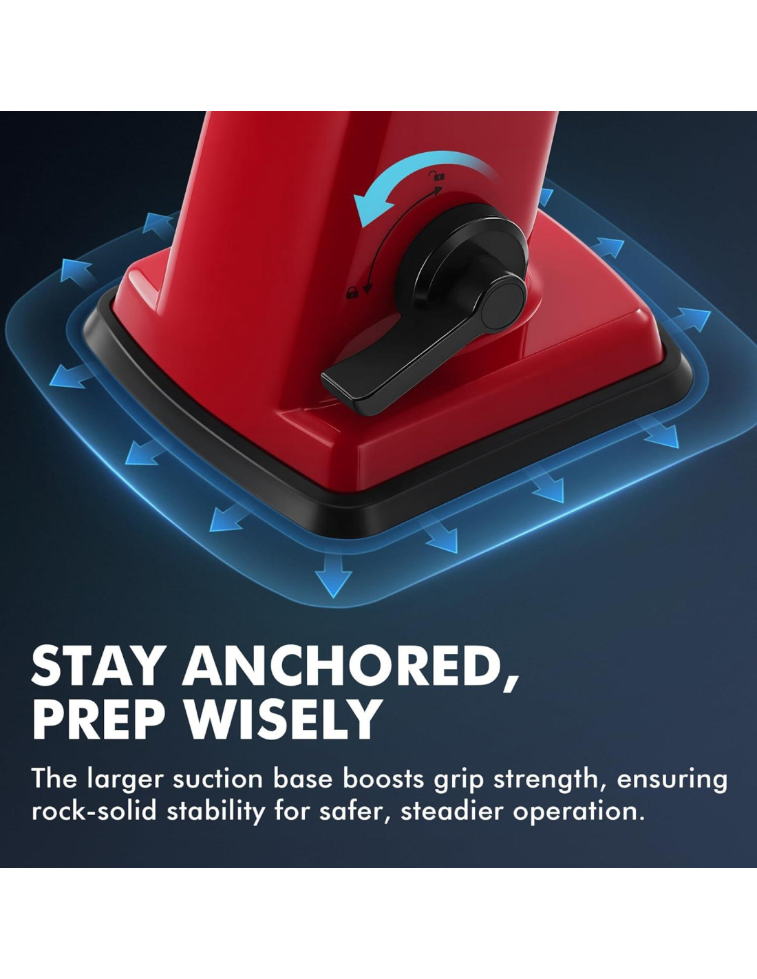 - Uso Seguro y Confiable: Hecho de materiales aptos para alimentos sin BPA, este rallador de queso rotatorio con mango asegura un procesamiento de alimentos seguro. La base de succión recién mejorada proporciona un agarre aún más fuerte, manteniendo el rallador fijado de manera segura a tu encimera para una operación más rápida y segura. Además, el empujador mantiene tus manos alejadas de las cuchillas.