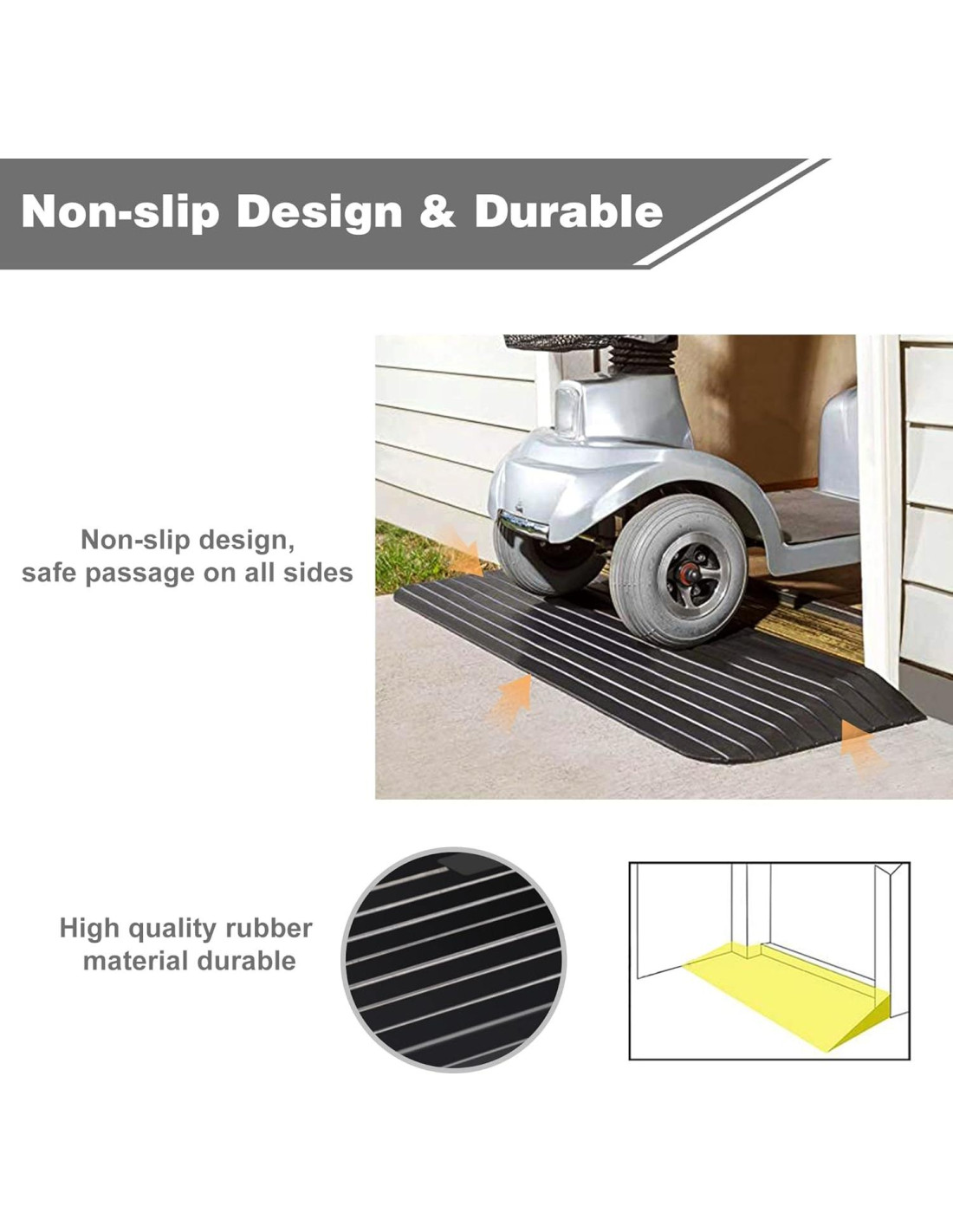 - [Ligera, portátil y ampliamente aplicada] La rampa de 3" (7.62 cm) pesa aproximadamente 30.86 libras (13.98 kg), lo que es ligero y portátil. Está especialmente diseñada para scooters, carritos, mascotas, etc. para subir. Ampliamente utilizada en bordillos, entradas de casas, entradas de vehículos, tiendas, etc.