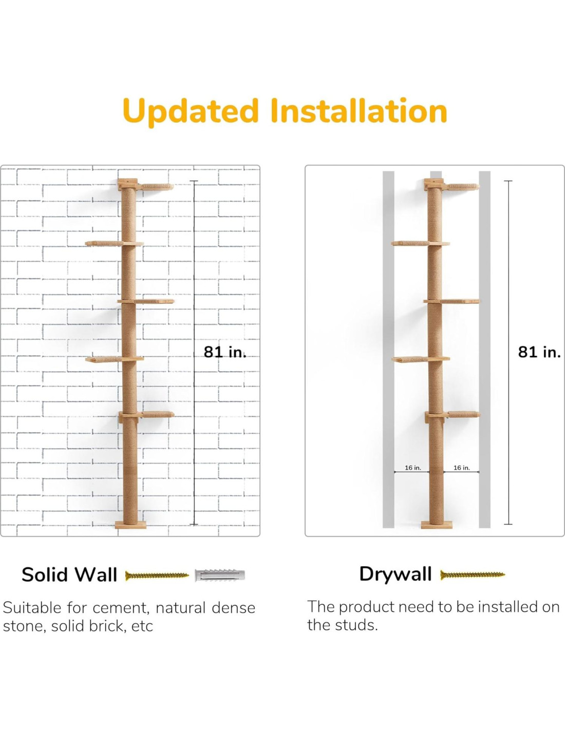 - NATURAL Y DURADERO - El mueble de pared para gatos está hecho de madera de caucho sólida y cuerda de yute, resistente a golpes y rasguños para un uso prolongado, proporcionando un parque infantil natural para tus gatos. Además, está cubierto con 3 capas protectoras, que están basadas en plantas, lo que lo convierte en un árbol para gatos más duradero para gatos de interior.