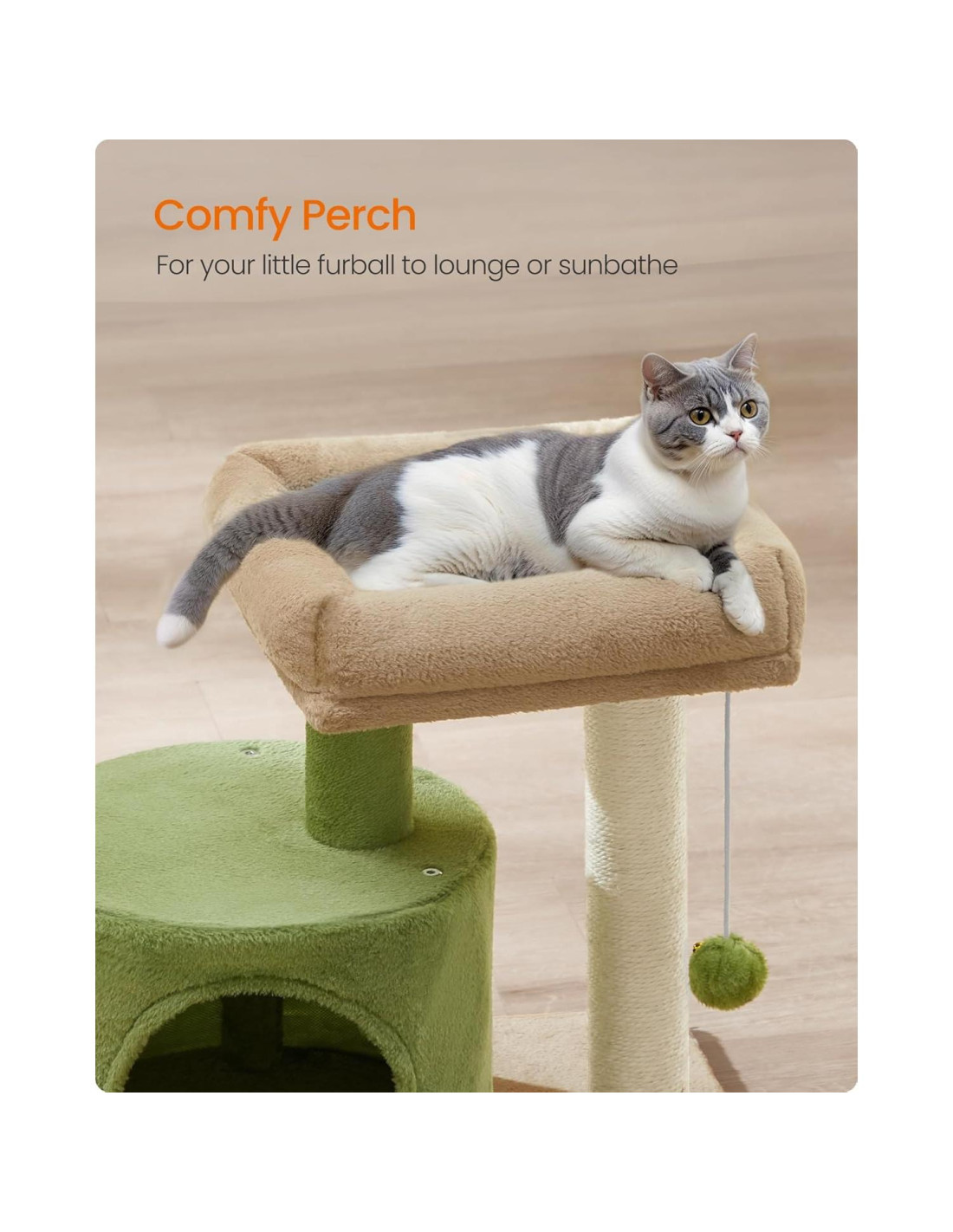 - ¿Diversión de Escalar o Rascar? No es necesario elegir entre ellos. Este árbol para gatos compacto, con su poste de sisal completamente envuelto, ofrece tanto exploración como disfrute de rasguños.