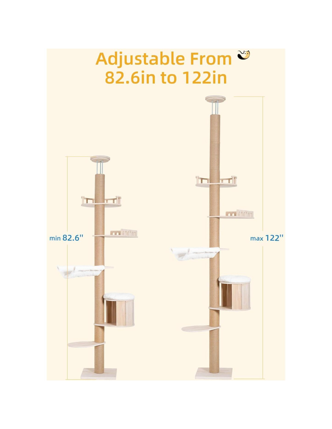 - Altura Máxima 122 pulgadas: La altura de este poste rascador para gatos se ajusta de 82.6 a 122 pulgadas, considerando completamente las necesidades de apartamentos pequeños y techos altos