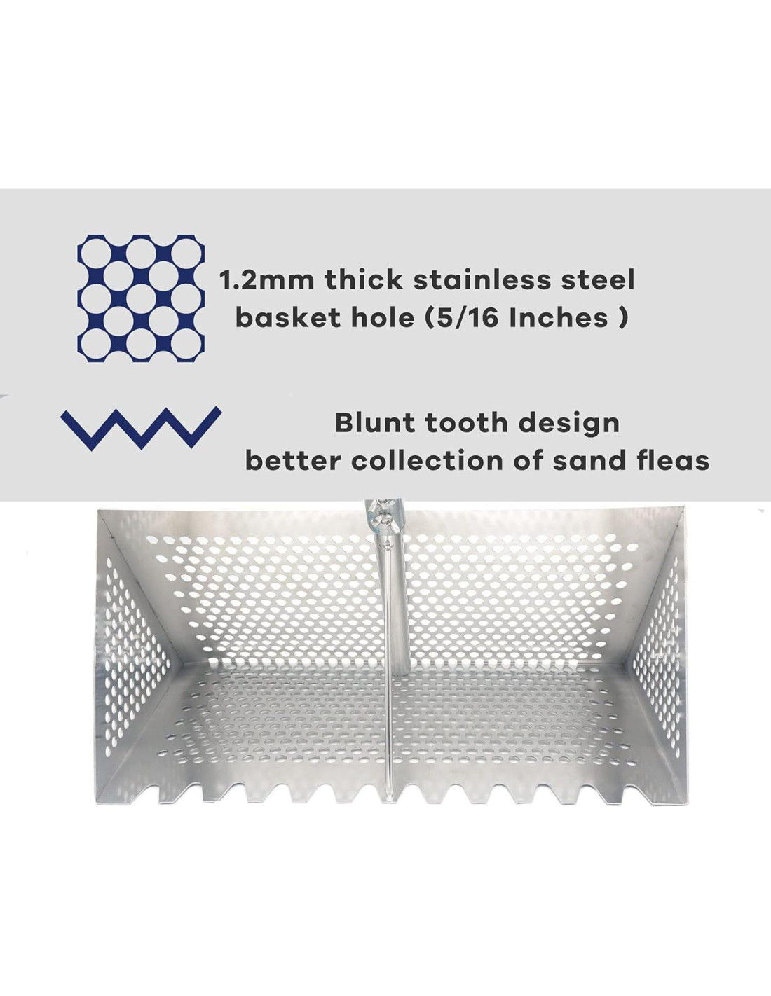 - Capturador eficiente y sólido: El capturador de pulgas de arena está soldado sin costuras y no hay puntos de soldadura, borde de dientes romos, apariencia integrada con practicidad, excelente para tamizar pulgas, gallineros, conchas, dientes de tiburón. Obtiene una gran palanca para excavar profundo.