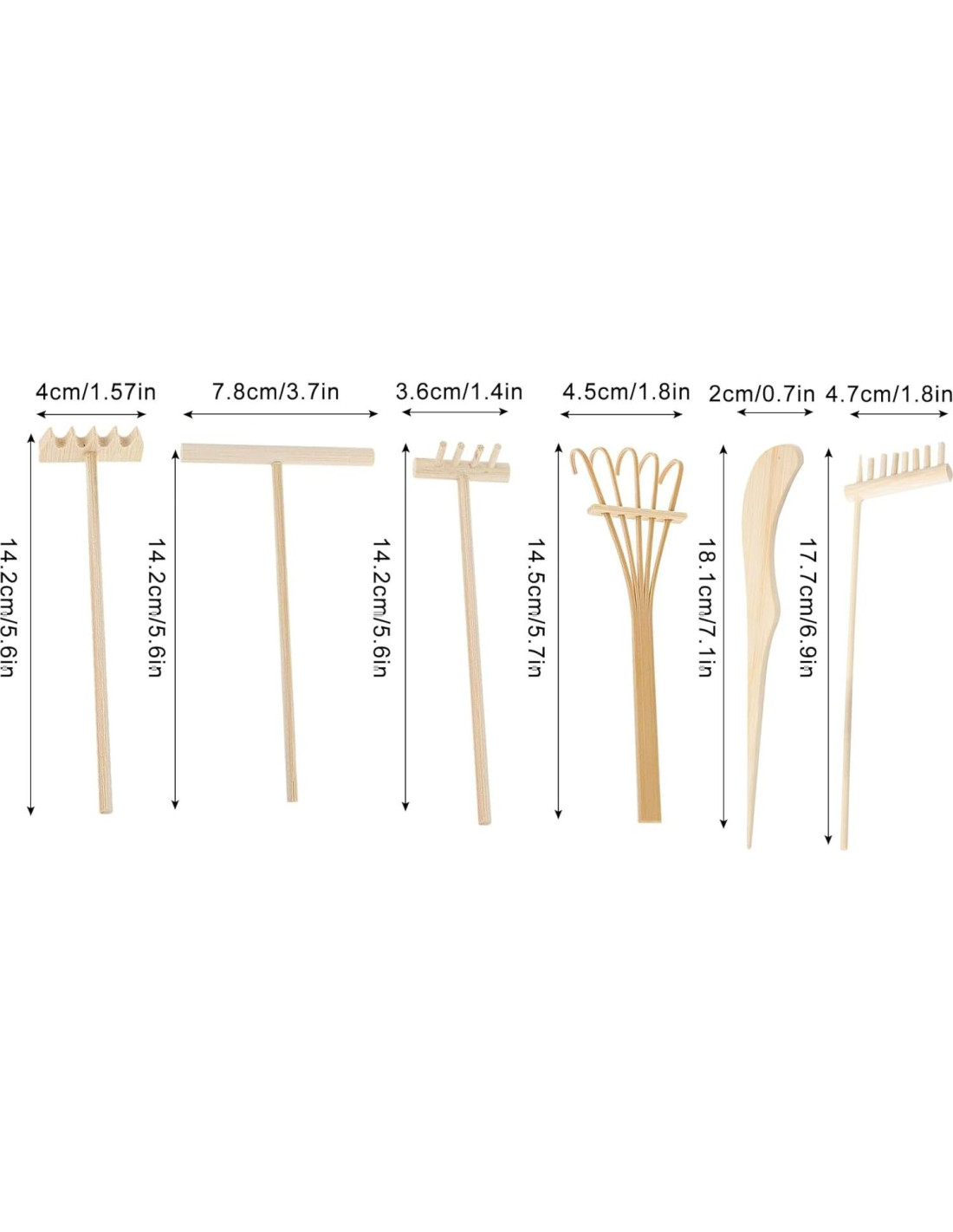 Descripción Accesorios de Mini Jardín Zen - Herramientas de Jardín Zen de Mesa - Kit de Jardín Zen Rastrillos para Oficina Mini Jardín Zen Set de 6 Características -Color: Color madera -Material: Madera -Tamaño: Como se muestra -Paquete incluye 6 x Rastrillos de Jardín Zen