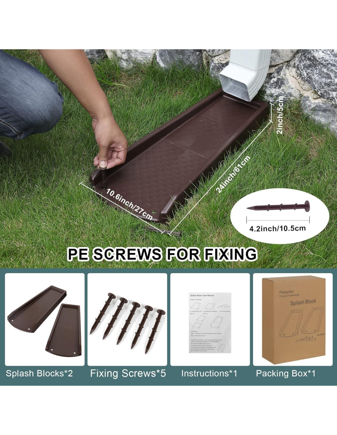- LISTA DE EMPAQUE Y SERVICIOS: 2 x bloque de salpicadura de bajante, 5 x clavos de PE (un clavo extra como respaldo). Estamos comprometidos a proporcionar a los clientes productos y servicios excelentes, por favor háznos saber si tienes alguna pregunta o necesitas asistencia
