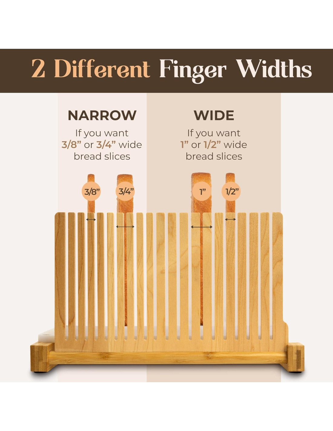 - Rebanadas de Todos los Tamaños: Desde rebanadas delgadas de 3/8" (0,95 cm) hasta cortes gruesos de 1" (2,54 cm), nuestro cortador de pan de bambú lo maneja todo