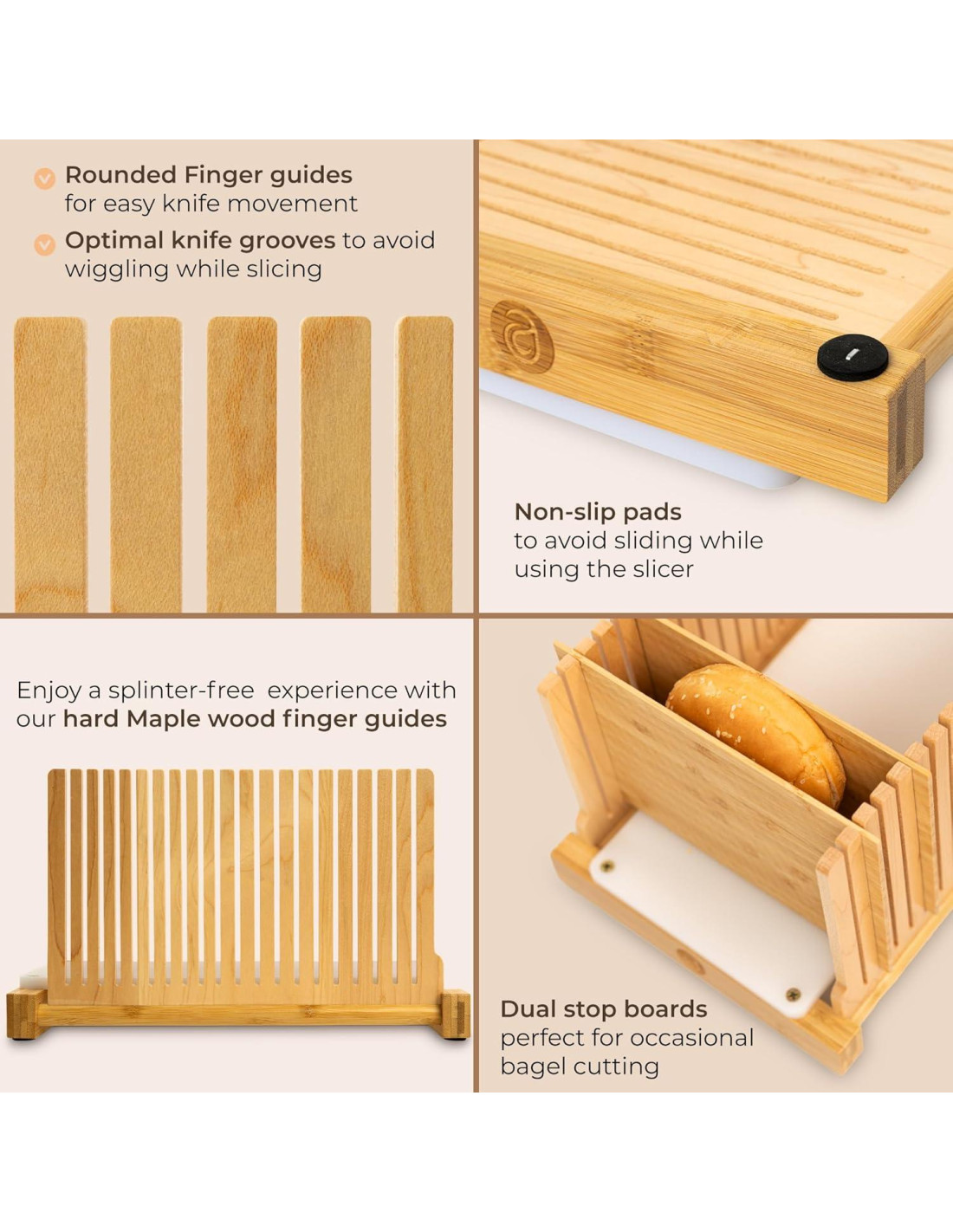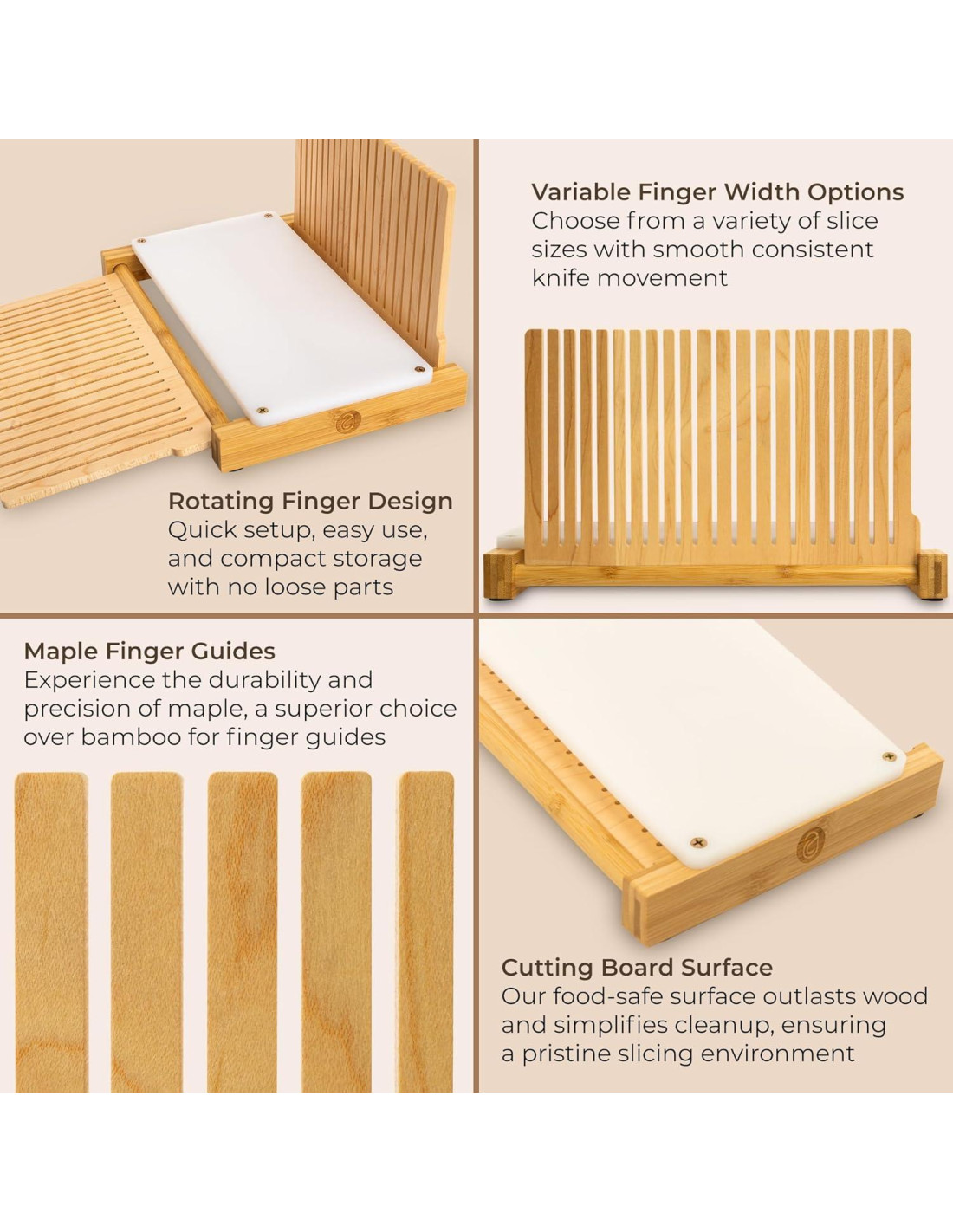 - Ranuras de Cuchillo Más Delgadas: Guía de cortador de pan cuidadosamente diseñada para mantener el cuchillo en línea recta y prevenir astillas de madera