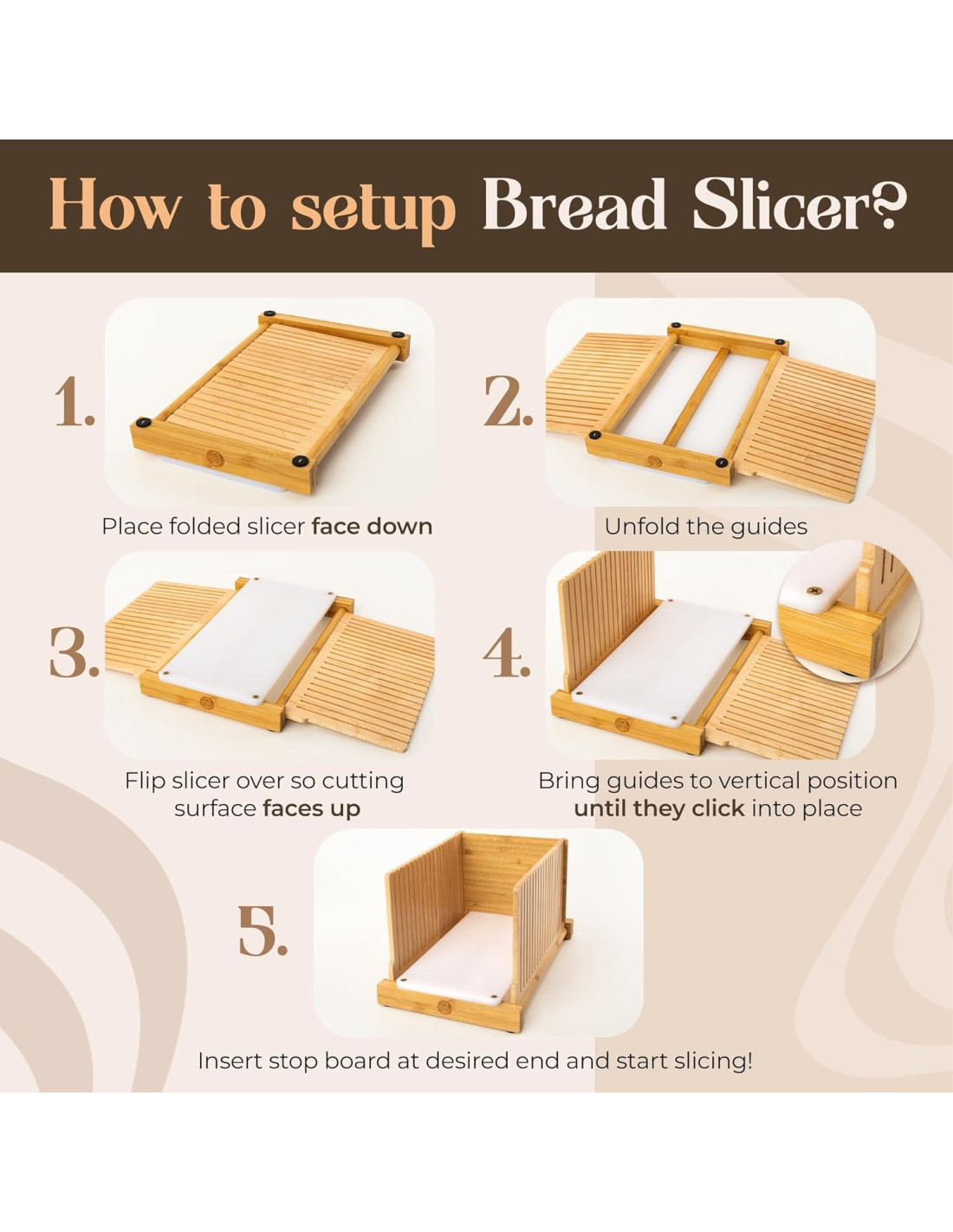 - Diseño Compacto: Este cortador de pan para pan casero es fácil de limpiar, se pliega para un almacenamiento optimizado y se despliega con la misma facilidad