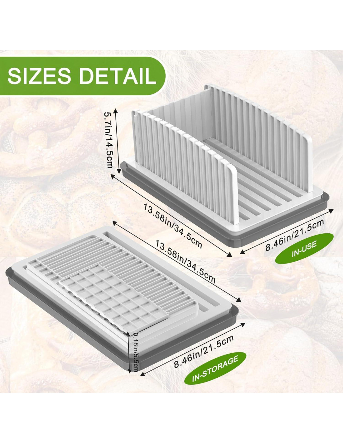 - GRANDES REGALOS: El color blanco y gris clásico contribuye a una apariencia elegante, adecuada para todo tipo de decoración de cocina, moderna, generosa, versátil y práctica. Nuestro cortador de pan es un gran regalo para mamá, amigos y cualquier persona que ame el pan casero