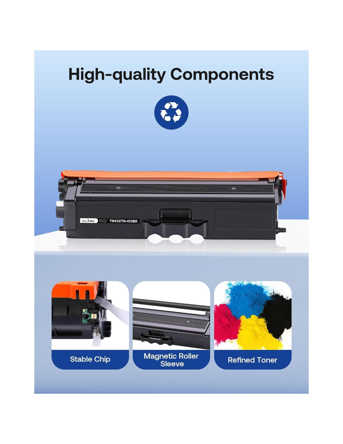- Incluye el paquete: WEAREC TN431 TN433 TN436 cartucho de tóner compatible paquete de 4 - Negro, Cian, Amarillo, Magenta