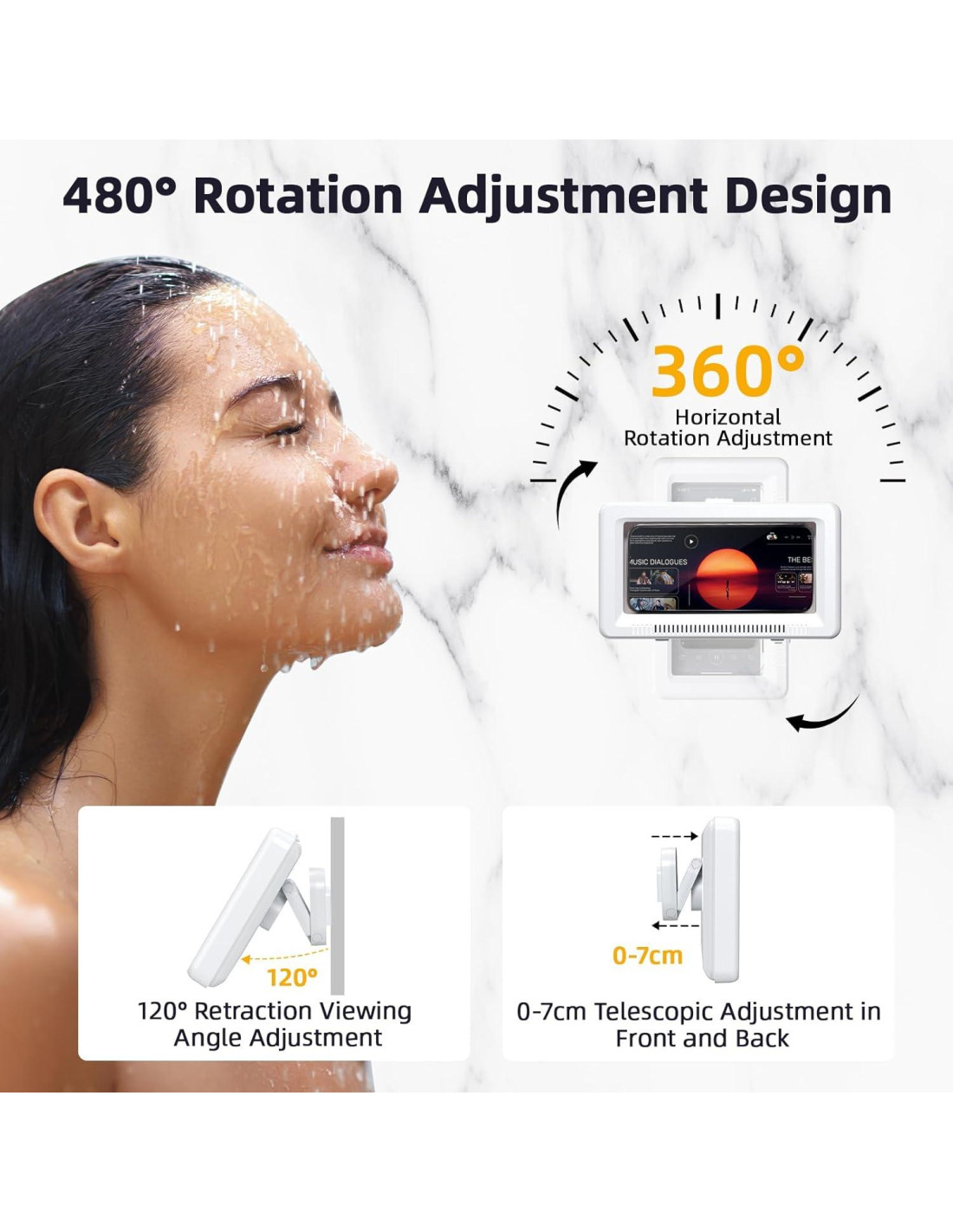 - Soporte para Teléfono Multifuncional: El soporte trasero del soporte para teléfono de ducha impermeable se puede ajustar en múltiples ángulos. Se puede instalar en una pared lisa con un gancho autoadhesivo, o se puede colocar directamente sobre la mesa como un soporte para teléfono móvil. Es flexible para desensamblar y muy conveniente.