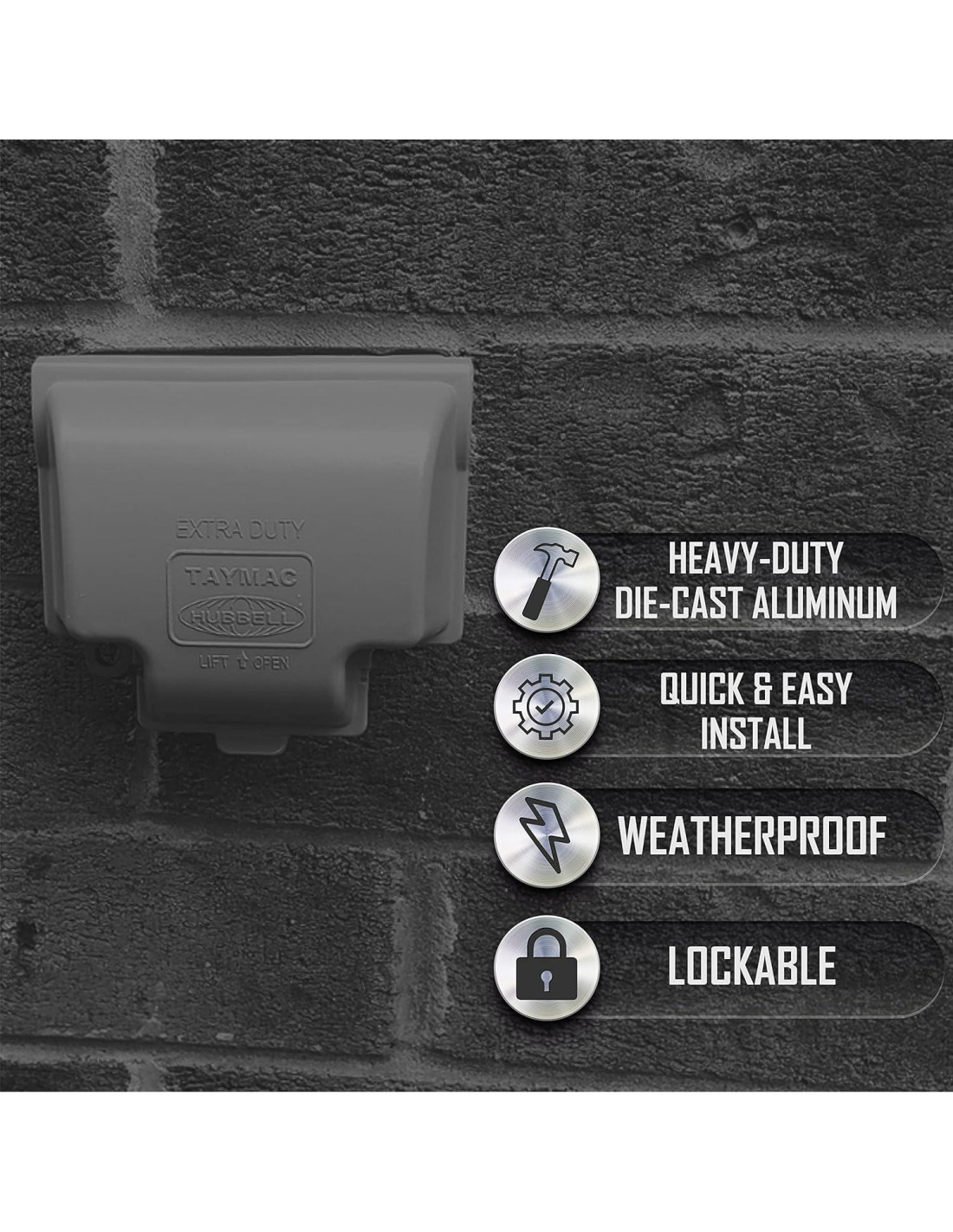 - CONSTRUCCIÓN DE CALIDAD: Nuestra cubierta de enchufe está construida de aluminio fundido a presión para máxima durabilidad. Tienes más espacio para cables eléctricos e incluye junta y hardware de montaje.