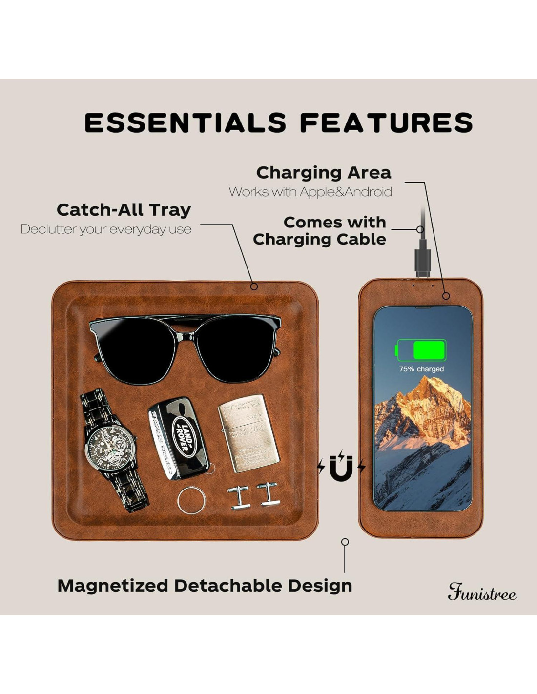 - Dispositivo agradable: El cargador inalámbrico proporciona un lugar todo en uno para cargar tu dispositivo y desordenar tus accesorios. Su construcción pesada y antideslizante asegura que se mantenga en su lugar de manera segura, lo que lo hace perfecto para usar en mesas de noche y entradas