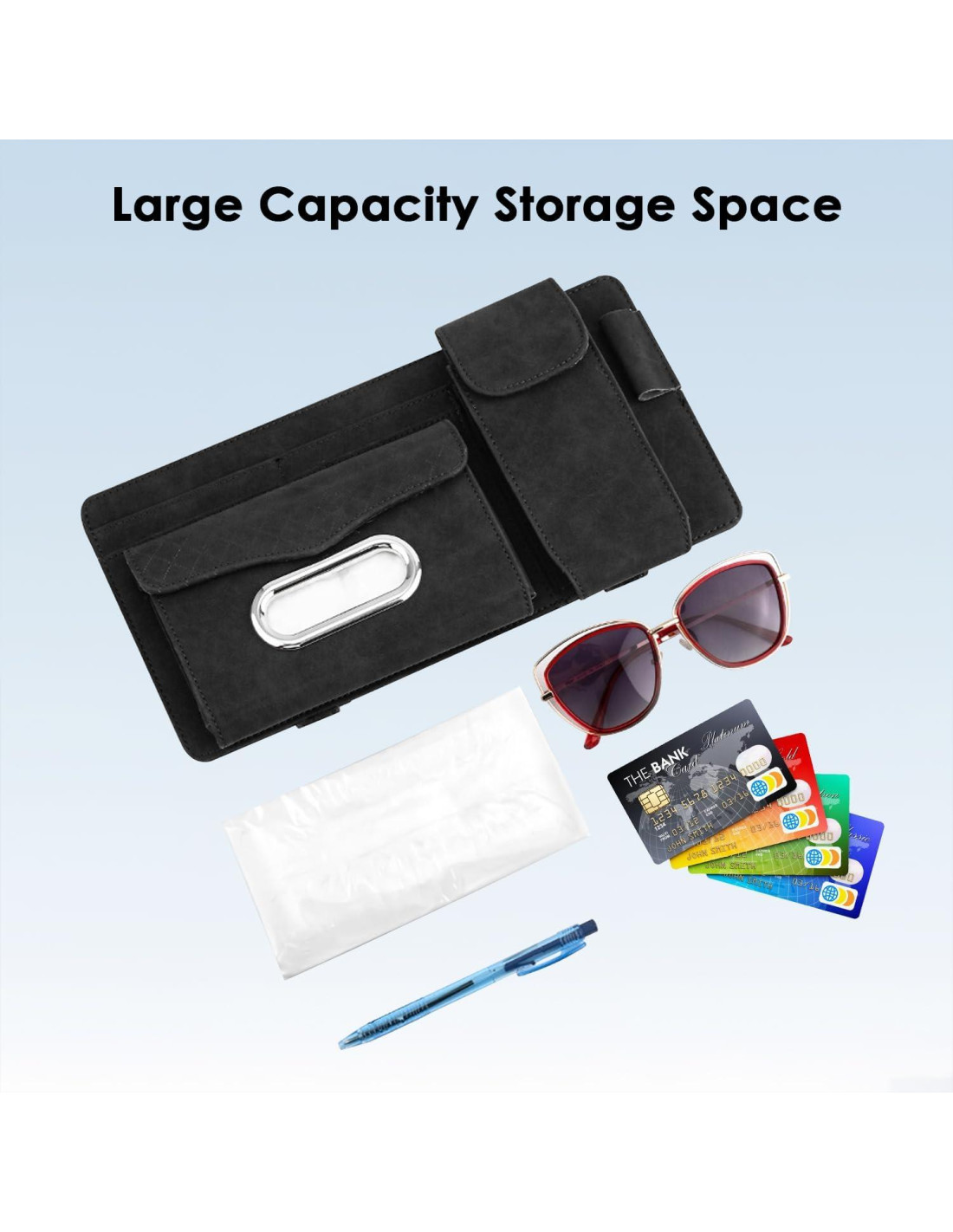 Organizador de Visera de Coche, Bolsa de Almacenamiento de Visera de Múltiples Bolsillos para Coches (Negro)