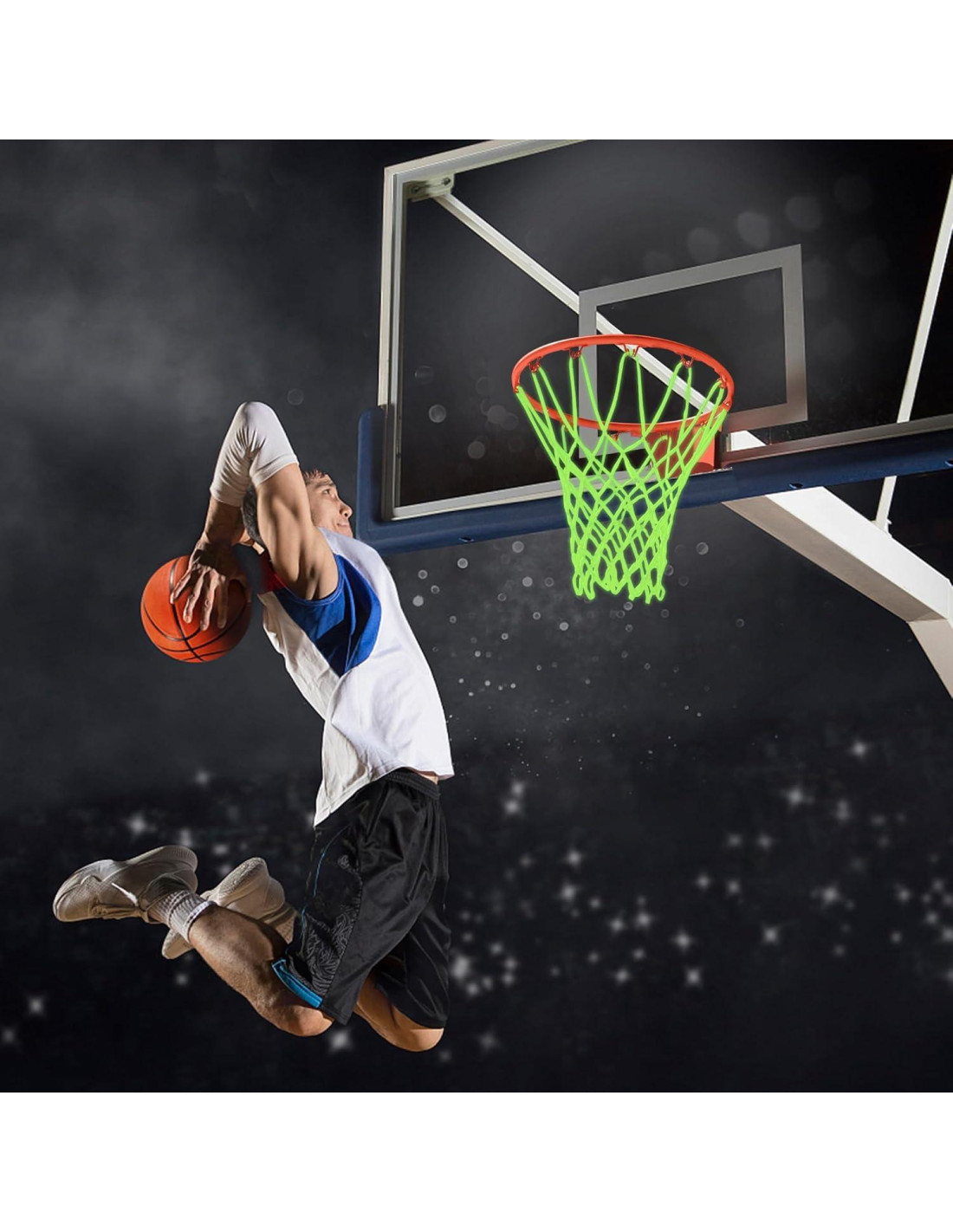 - [Actualización Integral] - Hemos aumentado el peso de la red de baloncesto luminosa, utilizando un verde fluorescente más brillante y mejor fibra de nylon. La red de baloncesto mejorada para la noche es más pesada y brillante.