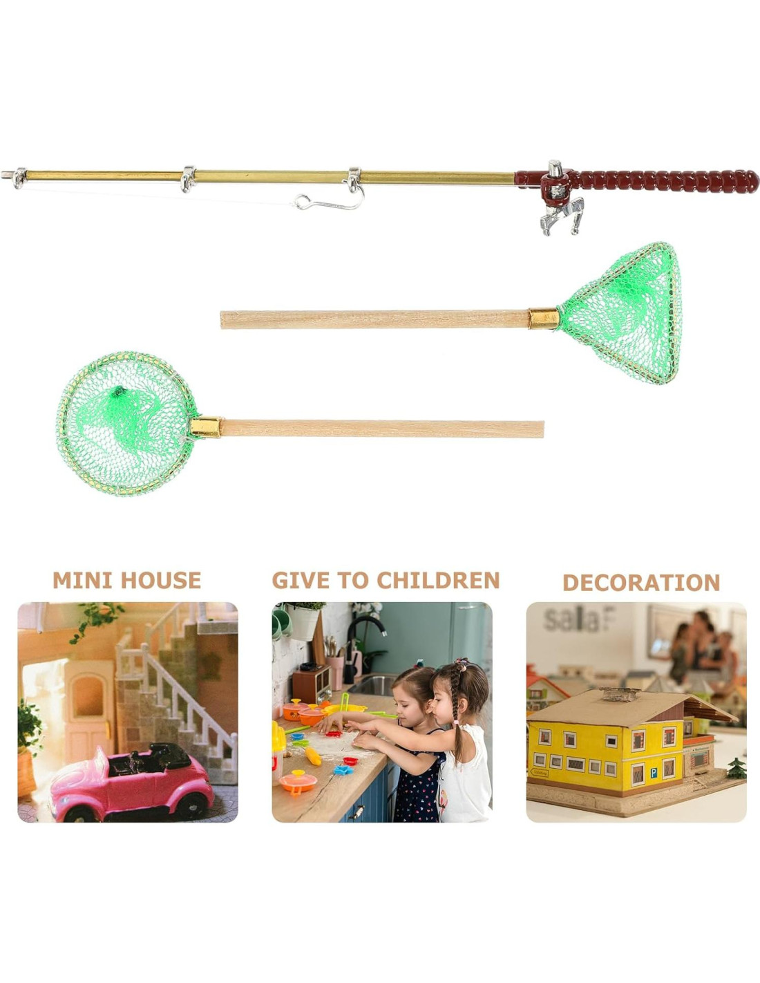 - Equipo de Pesca Miniatura Versátil: Sirviendo como accesorios esenciales para la casa, estos modelos de caña de pesca y red miniatura se colocan sin esfuerzo y exhiben versatilidad en su uso