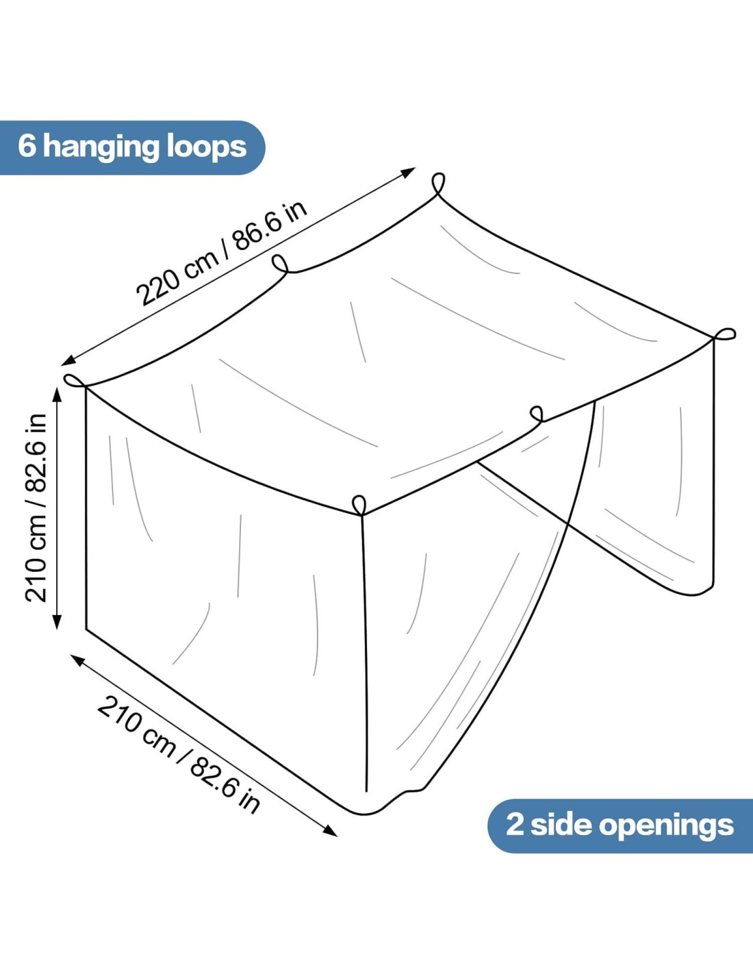 - Calidad Mejorada: La red para mosquitos adopta un diseño de malla hexagonal transpirable y robusto, que mejora la circulación del aire mientras mejora el rendimiento de durabilidad. 8 puntos de fijación hacen que la red para mosquitos no sea fácil de deformar y mantenga la forma original, con la tela inodora personalizada para el patio, para que puedas disfrutar de la vida al aire libre con tranquilidad.