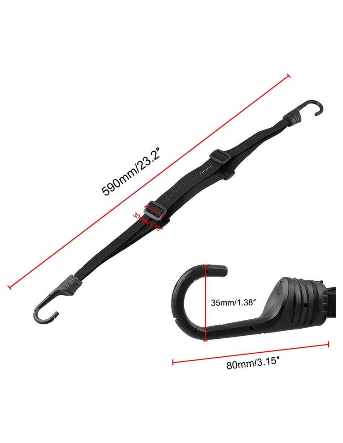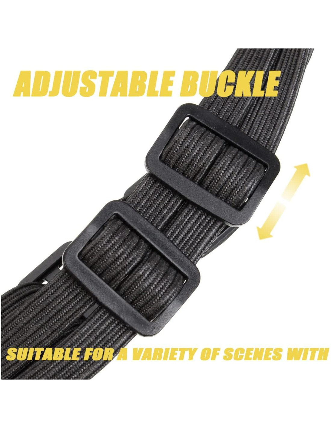 - Hebilla Ajustable - La hebilla deslizante de la correa elástica está diseñada para ser ajustable, proporcionando estabilidad y mejor protección para la carga o casco.