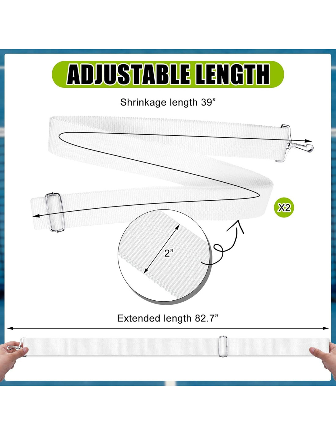 - Fácil de Ajustar: la correa de la red de tenis mide aproximadamente 99 x 5 cm, con hebilla, se puede ajustar a la altura que necesites a través de la hebilla en la correa de la red, para que pueda mantener una altura consistente con tu red de tenis