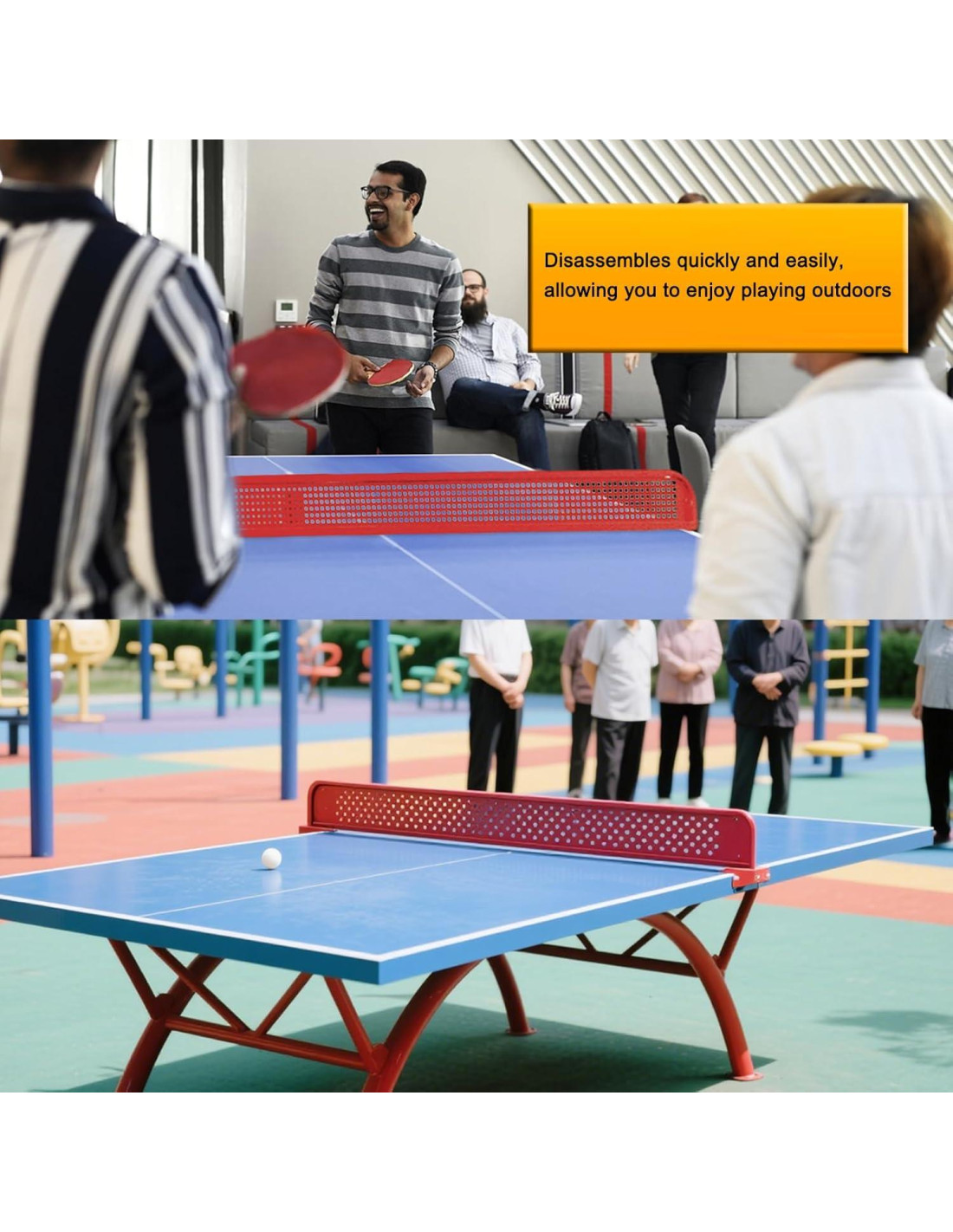 - Red de Mesa de Ping Pong para Interior y Exterior: La red de tenis de mesa te permite practicar, ideal para mesas en tu hogar, oficina, playa, patio exterior, jardín o en cualquier lugar, adecuada para que los adultos jueguen en interiores o exteriores