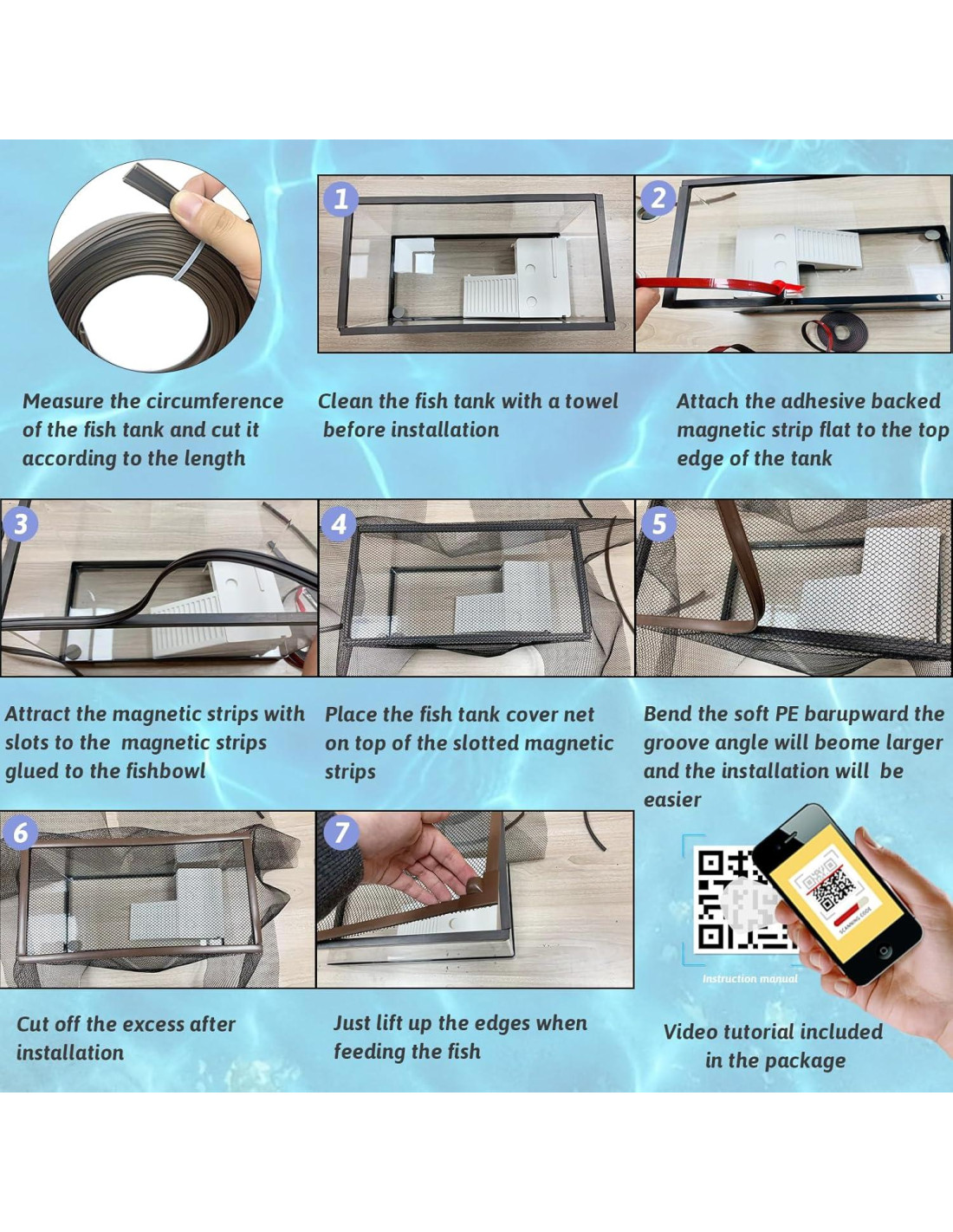 - PROTEGE A TUS PECES: La tapa magnética para acuario utiliza tiras magnéticas fuertes para proporcionar un soporte sólido para la tapa del acuario, lo que puede prevenir eficazmente que gatos u otros animales dañen a tus peces.