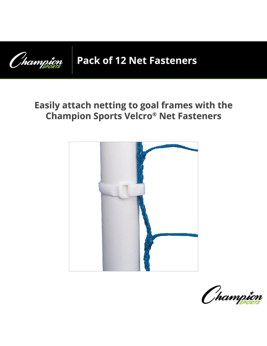 Los Agujeros de Red Champion Sports son agujeros de red de Velcro. Se adhieren a cualquier poste de gol de hasta 4" (10.16 cm) y se venden por docena. Precio individual.