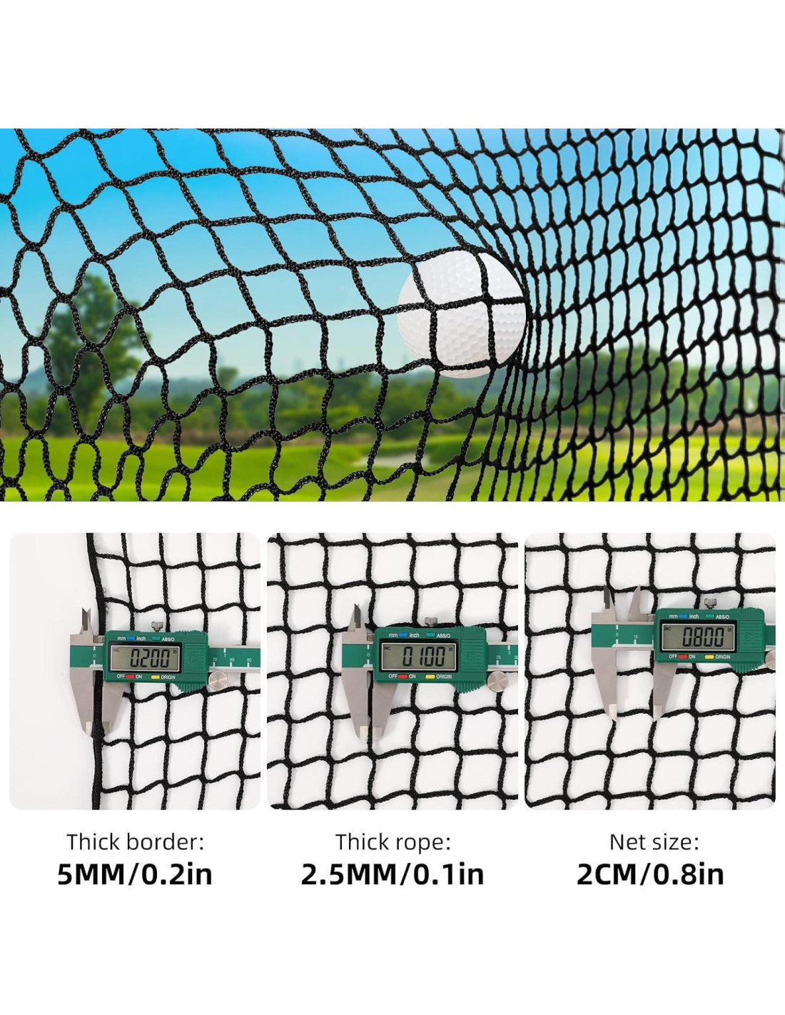 - [Múltiples Usos]: El tamaño de malla de nuestra red de chipping es de 1 in (2,54 cm), que no solo es adecuada para la práctica de golf, sino que también se utiliza para otras redes deportivas, como redes de béisbol para bateo y redes de tenis. También puedes usar nuestra red de golf como una red de protección para una pantalla de impacto de golf y simulador de golf para el hogar. La red de golf también será una red de barrera para tu práctica de simulador de golf.
