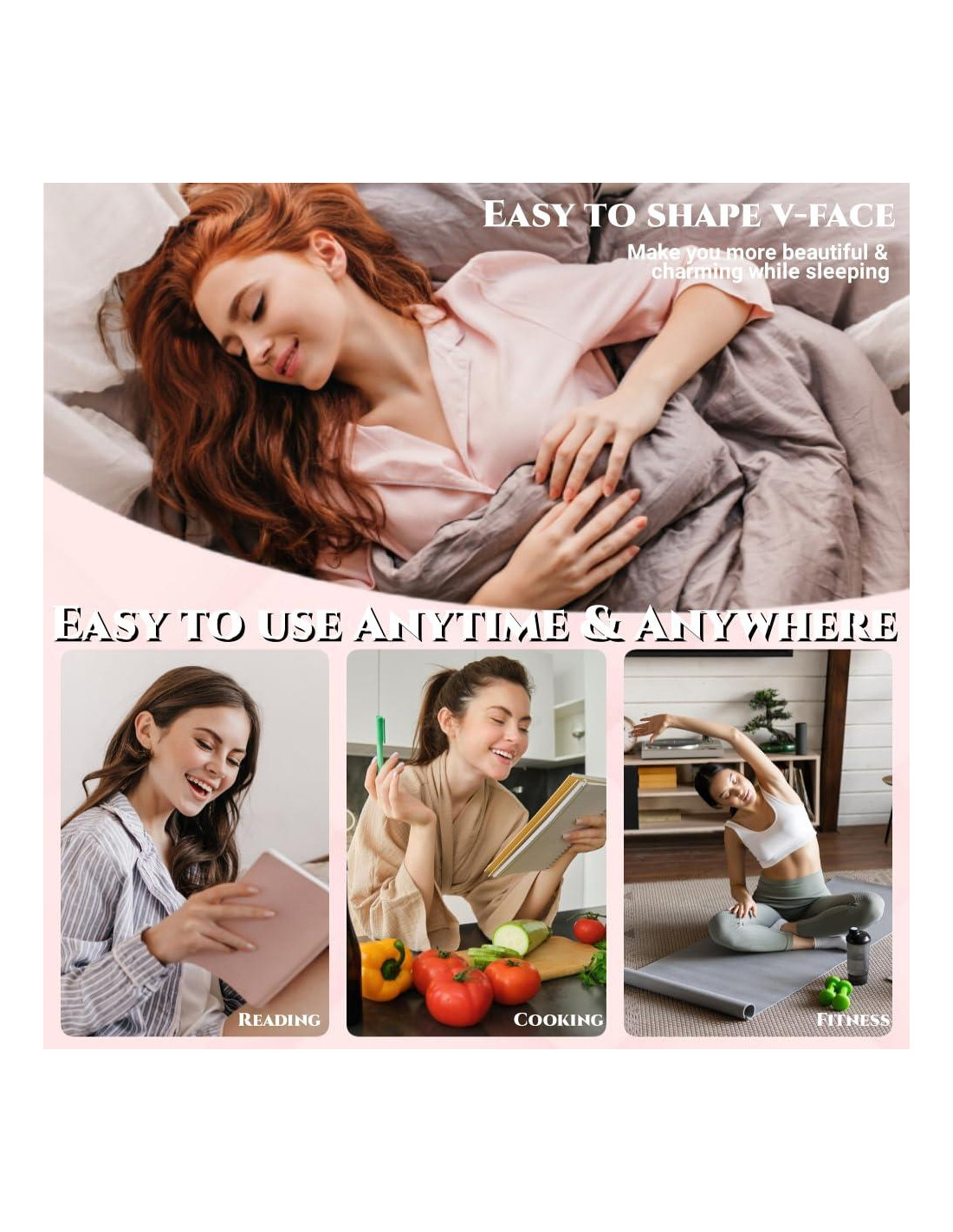 - Logra el aspecto deseado: El uso regular de nuestra venda durante solo una hora al día durante cuatro semanas puede restaurar la elasticidad de la piel, ayudar a dar forma al contorno facial en forma de V y eliminar efectivamente la papada y la piel suelta. Abraza una cara firme, joven y enérgica en forma de V, aumentando tu confianza y belleza.