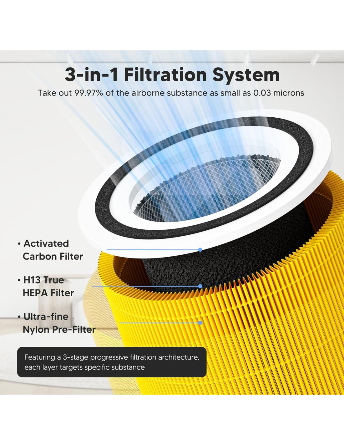 - El filtro de reemplazo premium core 300 para levoit adopta un sistema de filtración H13 Grade True HEPA 3-en-1 ( 1 Filtro Preliminar de Nylon 2 Filtro HEPA Verdadero Grado H13 3 Filtro de Carbón Activado con Fórmula ARC) para eliminar el 99.97% de las sustancias hasta 0.03 micrones de tamaño, mejorando automáticamente la calidad del aire y promoviendo una mejor salud y bienestar para usted