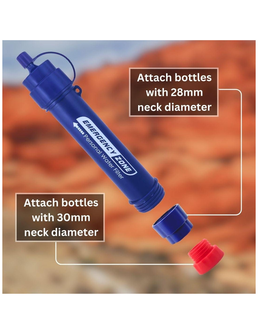 - [Herramienta Confiable de Purificación de Agua de Emergencia]: Haz que un filtro de agua sea una parte esencial de tu equipo de supervivencia. Ya sea que estés caminando por áreas remotas o atrapado en una emergencia, asegura el acceso a agua potable, previniendo la deshidratación. No se necesitan artículos adicionales, solo agua pura y confiable para tus necesidades al aire libre y de emergencia.