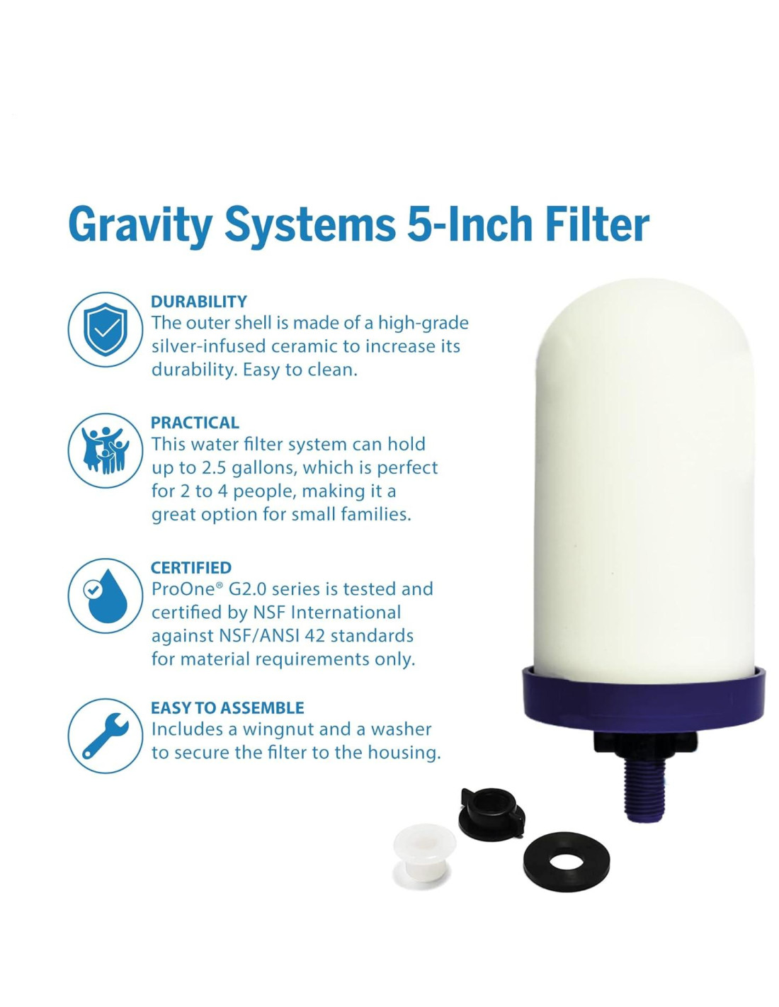 - FILTRO DE AGUA DE REEMPLAZO: Con tantos productos químicos y contaminantes por ahí, todos necesitan un sistema de filtración de agua confiable. Con este filtro de reemplazo para los Sistemas de Filtro de Agua de Gravedad ProOne Traveler+, nunca te quedarás sin agua limpia.
