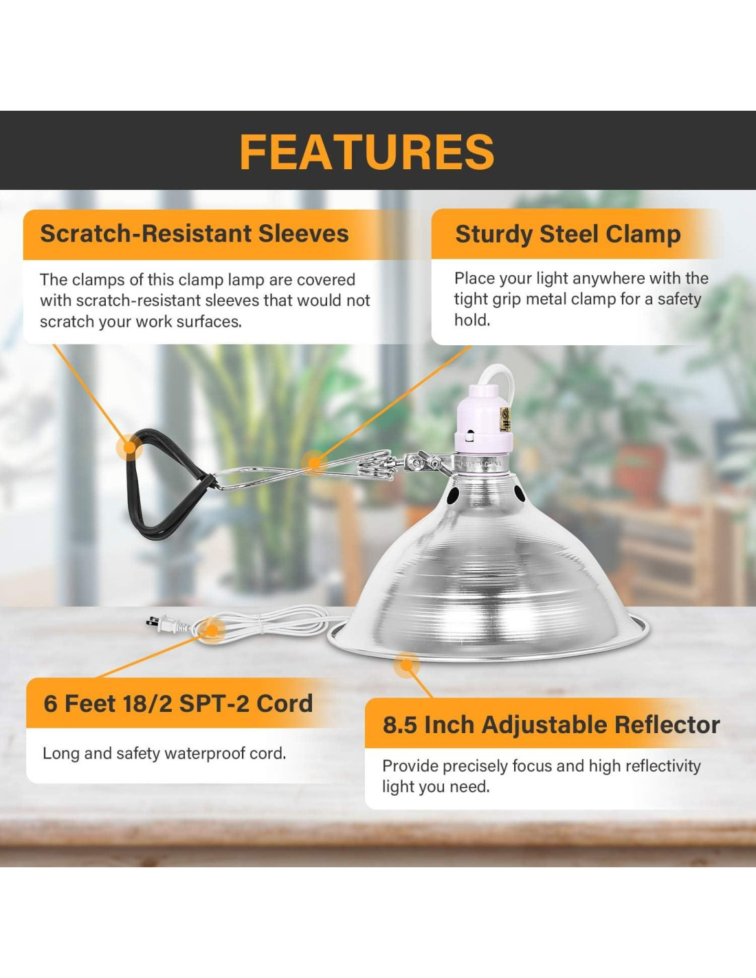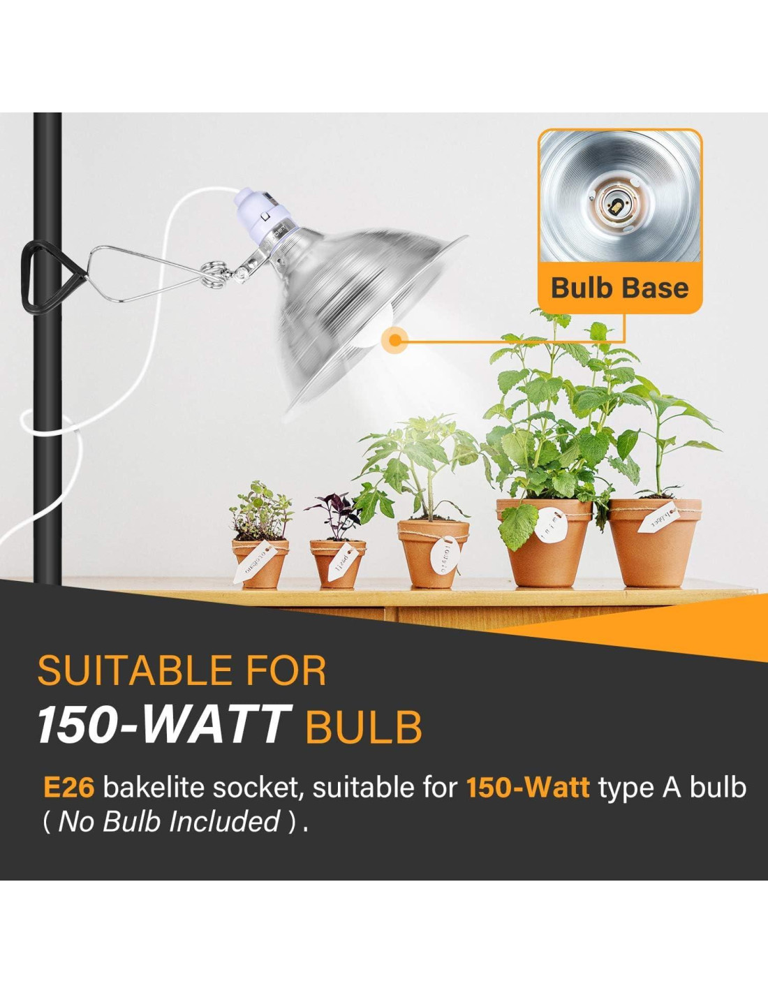 - El paquete incluye: lámpara de abrazadera con reflector de aluminio de 150W de 8.5 pulgadas (sin bombilla incluida)