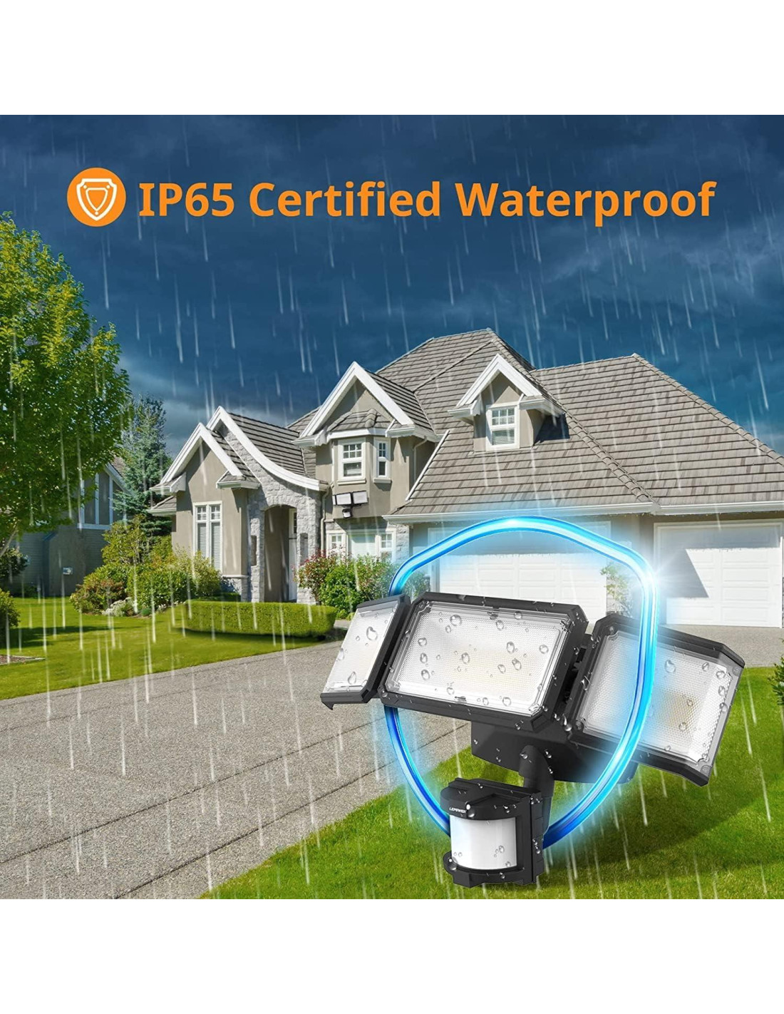 - IP65 Impermeable: La luz de inundación a batería es lo suficientemente resistente para soportar condiciones climáticas potencialmente duras como viento, lluvia, nieve y clima helado.