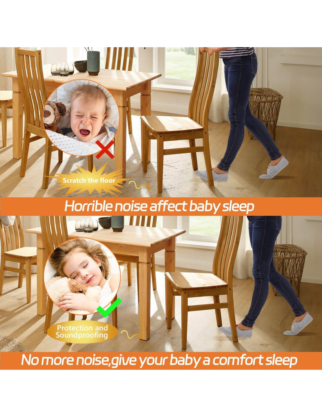 - No Más Rayones, No Más Ruido Nuestras almohadillas para muebles para suelos de madera dura no solo protegen perfectamente sus suelos de madera, laminados, baldosas y mármol, sino que también reducen perfectamente los ruidos fuertes al mover muebles. No hay necesidad de preocuparse por suelos costosos siendo rayados, no hay necesidad de soportar ruidos fuertes, disfrute de una vida pacífica