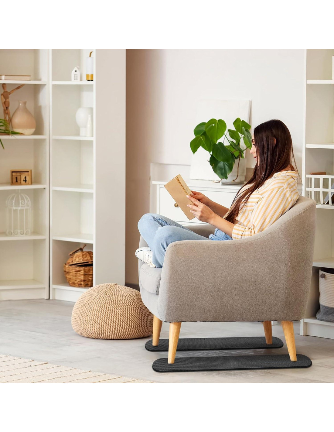 La mejor solución para mantener reclinables, sillas y otros muebles en su lugar y evitar rasguños y abolladuras en madera, azulejos, alfombra y otras superficies. No se necesita pegamento y no deja residuos. Hecho de goma duradera y gruesa que dura para un uso a largo plazo. El diámetro de la almohadilla es de 10.16cm x 76.2cm, y se puede cortar para adaptarse a sus necesidades.