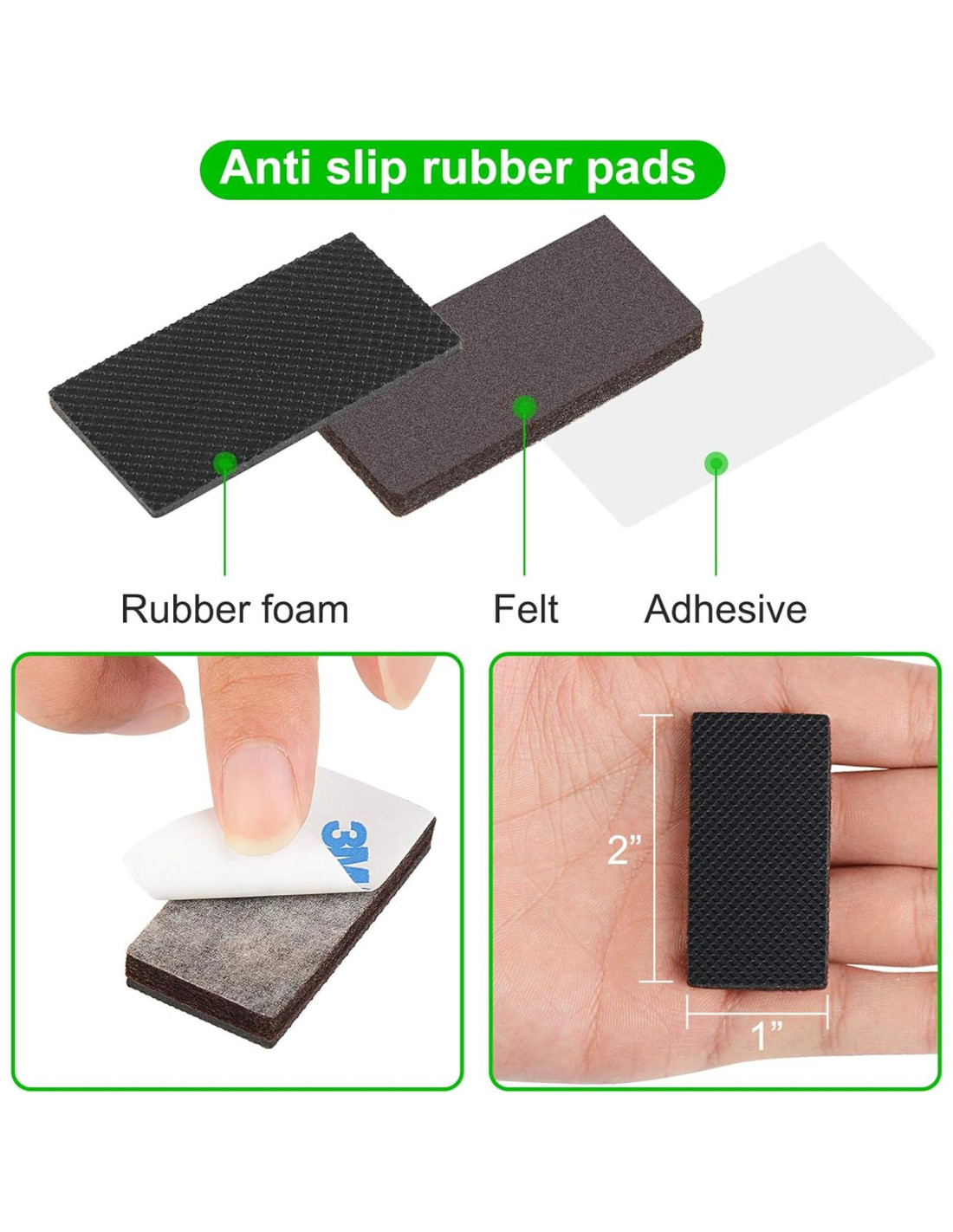 - [PAQUETE DE VALOR EN UNA BOLSA] Un paquete de 16 piezas 2.54x5.08 cm almohadillas de goma en una bolsa resellable. Puedes usar estas almohadillas de goma antideslizantes en CUALQUIER mueble que se deslice por tu piso, desde patas de sillas hasta sofás pequeños y sistemas de entretenimiento. Puedes guardar las almohadillas antideslizantes adicionales en nuestra bolsa, ¡la próxima vez que las uses será como un producto nuevo!
