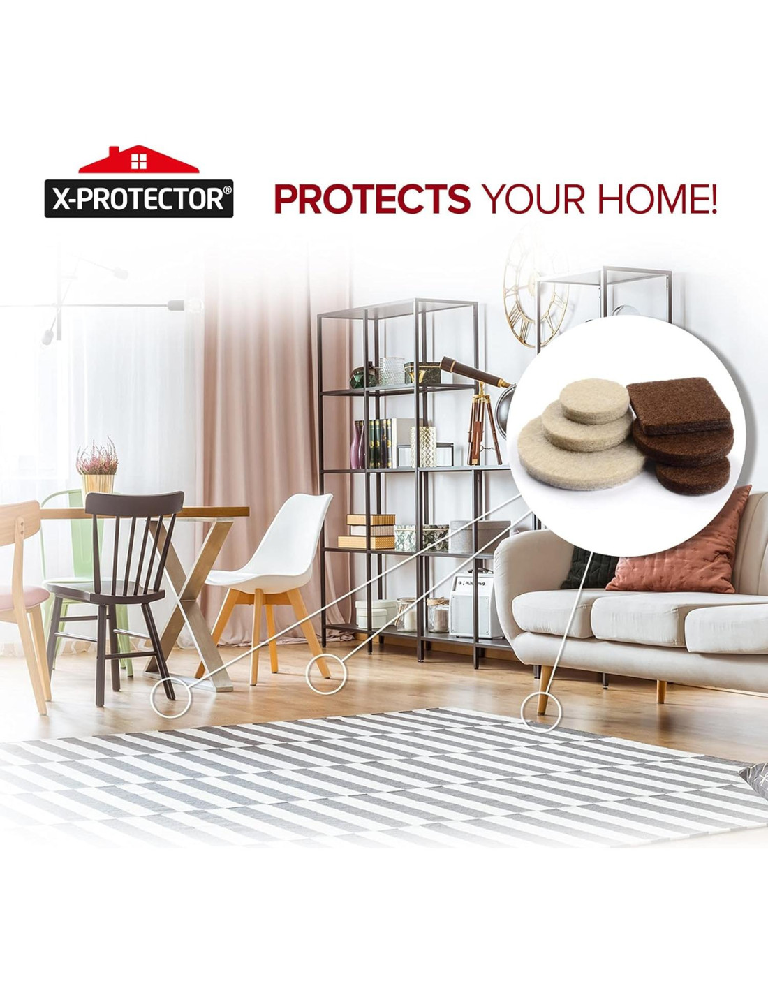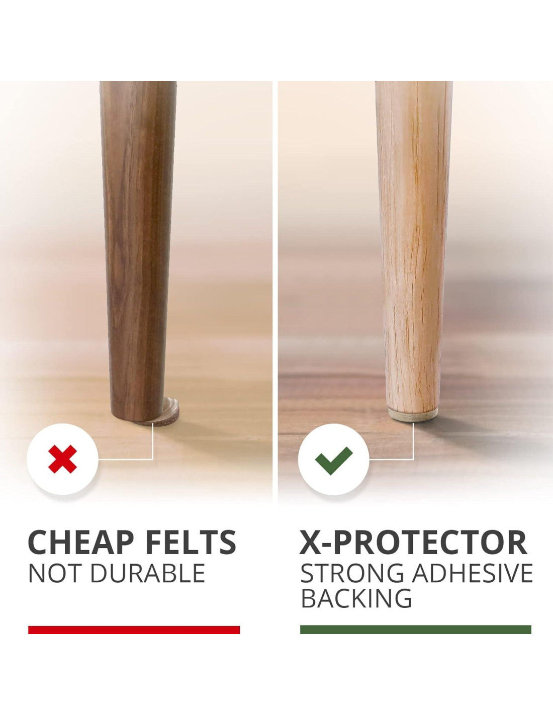 - X-PROTECTOR ALMOHADILLAS DE FIELTRO PARA MUEBLES - la mejor protección para tus pisos de madera, laminado o cerámica. Nuestros posavasos para muebles crean fuertes escudos entre el piso y los muebles, escritorios y mesas, que protegen cuidadosamente las superficies de rasguños y marcas.