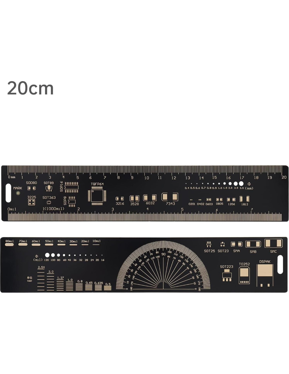 - 15cm 20cm 25cm 30cm Regla Multifuncional de PCB Herramienta de Medición Resistor Capacitor Chip IC SMD Diodo Transistor Paquete 180 Grados