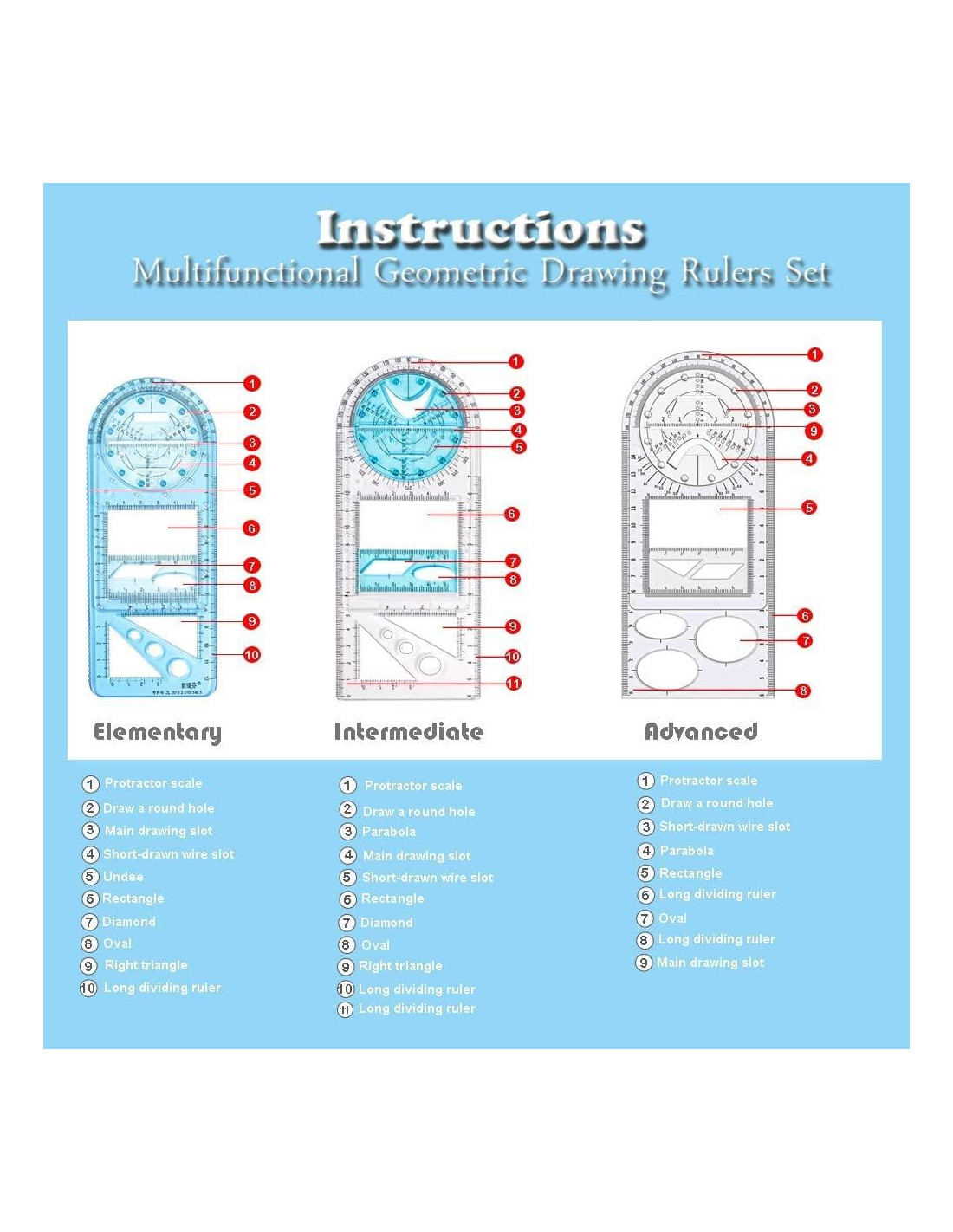 - El paquete incluye: 3 Paquetes/1 conjunto de Regla de Dibujo Geométrica Multifuncional