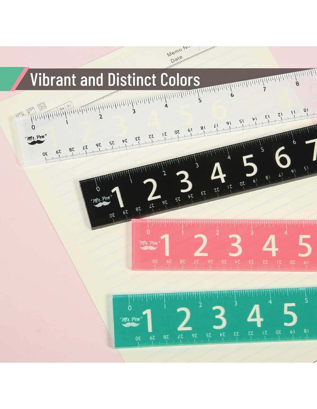 - El juego de reglas Mr. Pen incluye 4 reglas vibrantes, cada una mide 12 pulgadas (30 cm), perfectas para uso escolar, de oficina o en casa.