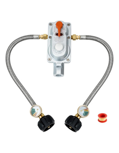 - Cambio automático - El kit de conexión de tanque de propano dual cuenta con un sistema de cambio automático que conecta dos tanques de propano y cambia entre ellos cuando uno se agota, evitando la pérdida repentina de suministro de gas, ahorrándote tiempo al cambiar los tanques de propano.