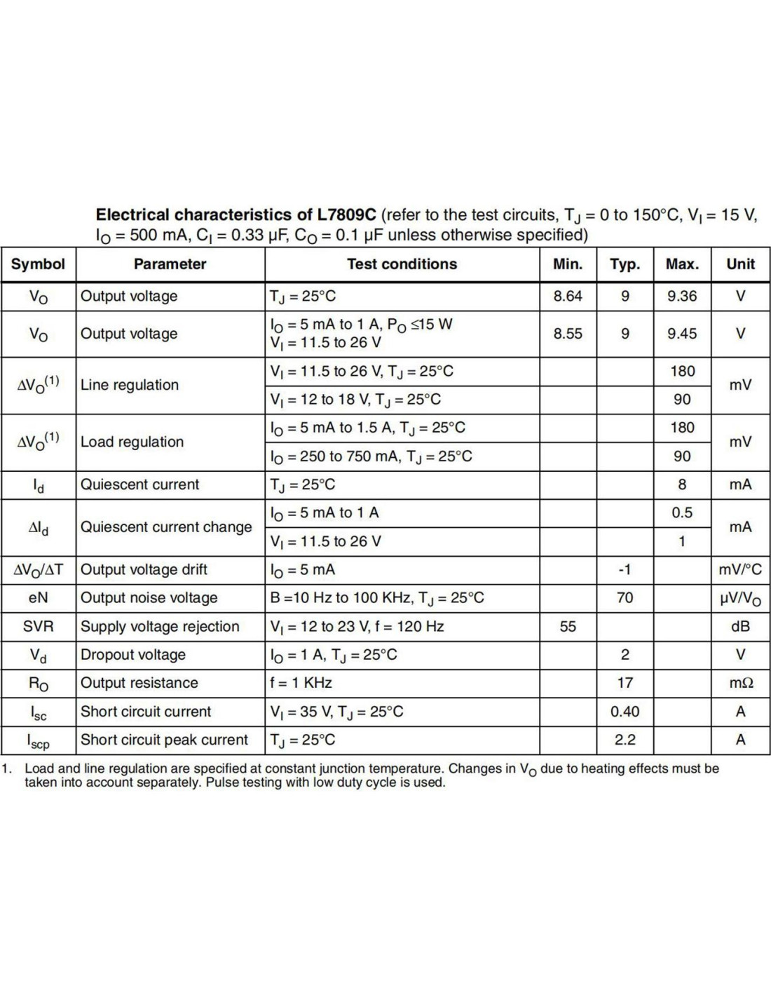 - Corriente de salida de 1.5A; Voltaje de salida 9V