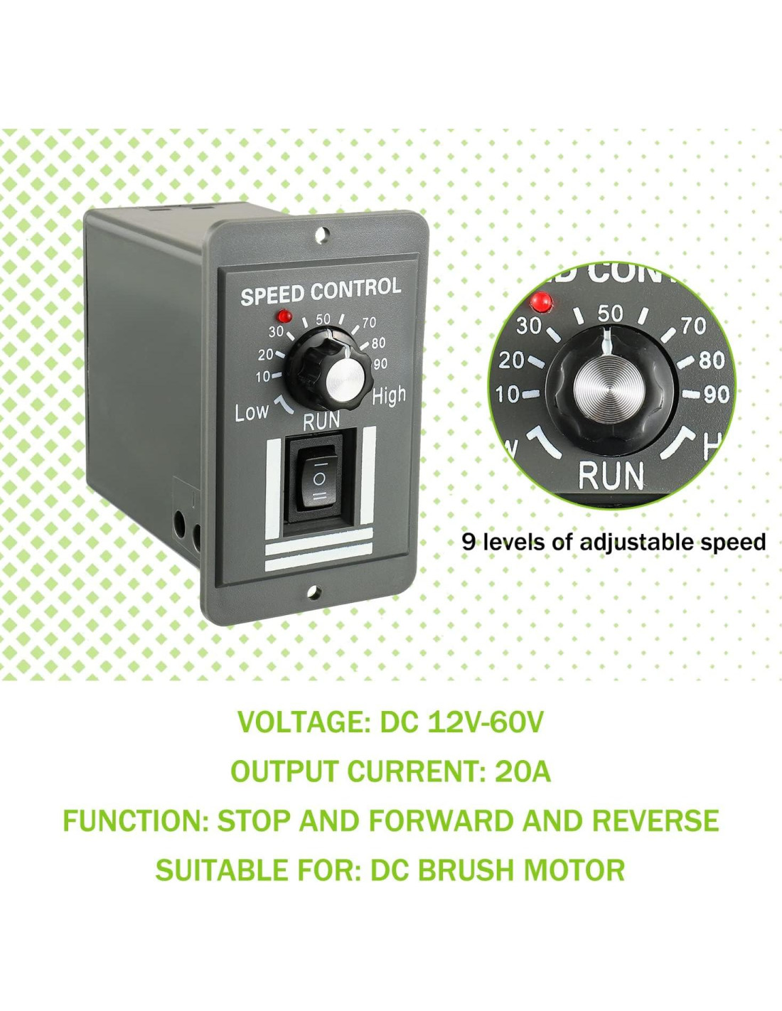 - Tamaño: 60 * 90 * 99mm/2.36 * 3.54 * 3.9in (L * A * H), el controlador de velocidad de motor DC es pequeño, tamaño de instalación: 52 * 81mm/2.05 * 3.19in, fácil de instalar en un espacio reducido; Soporta control de rotación adelante/atrás y parada