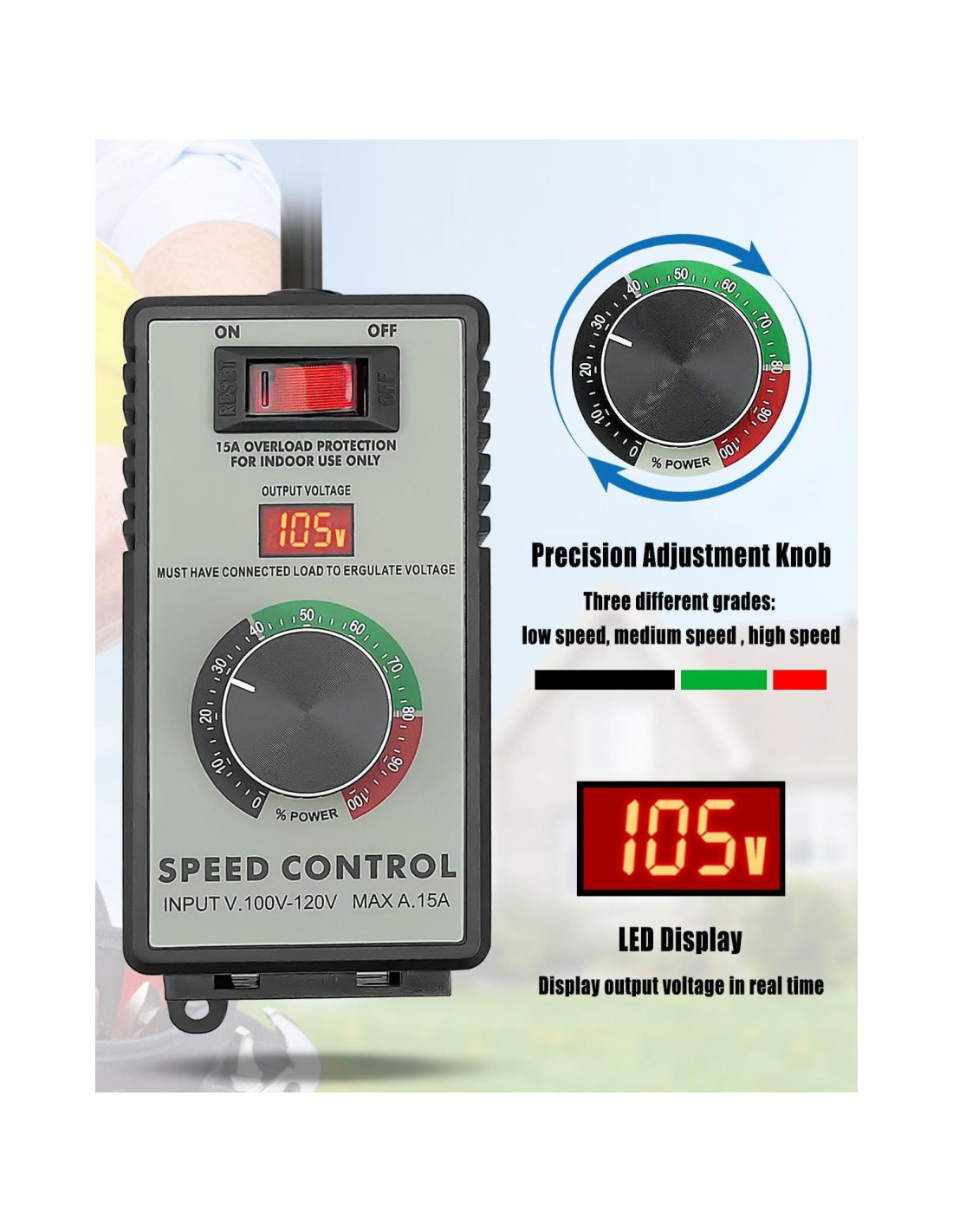 - Amplia Gama de Aplicaciones: El controlador de velocidad es compatible con los enchufes de tipo A y tipo B de estándar americano, etc., y puede ajustar la potencia en tiempo real de las herramientas eléctricas. Se puede utilizar para ajustar ventiladores eléctricos, bombillas de tungsteno, hornos eléctricos, amoladoras angulares, máquinas de mármol, sopladores, calefactores, etc. No adecuado para electrodomésticos con circuitos integrados o capacitores incorporados, como bombas de agua, hornos de microondas, cocinas de inducción, arroceras, lámparas LED de ahorro de energía, etc.