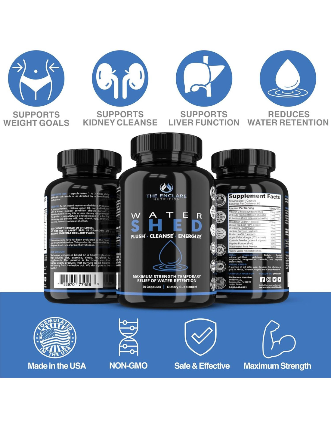 - ELIMINA, LIMPIA Y ENERGIZA TU CUERPO EFECTIVAMENTE: Enclare Watershed La Manera Suave de Reducir la Retención de Agua y el Peso. Hecho con Ingredientes Naturales que Restauran el Equilibrio de Agua en Tu Cuerpo. Píldoras de Peso de Agua para Desintoxicación Completa del Cuerpo, Limpieza de Riñones y Soporte para el Hígado, Alivio de Distensión Abdominal, Celulitis, Alivio de Hinchazón en Tobillos, Ojos, Manos y Piernas, y Reducción de Aumento de Peso por Agua. Tomado de Manera Consistente, las Cápsulas de Dieta Water Shed Apoyan el Equilibrio de Fluidos Corporales.