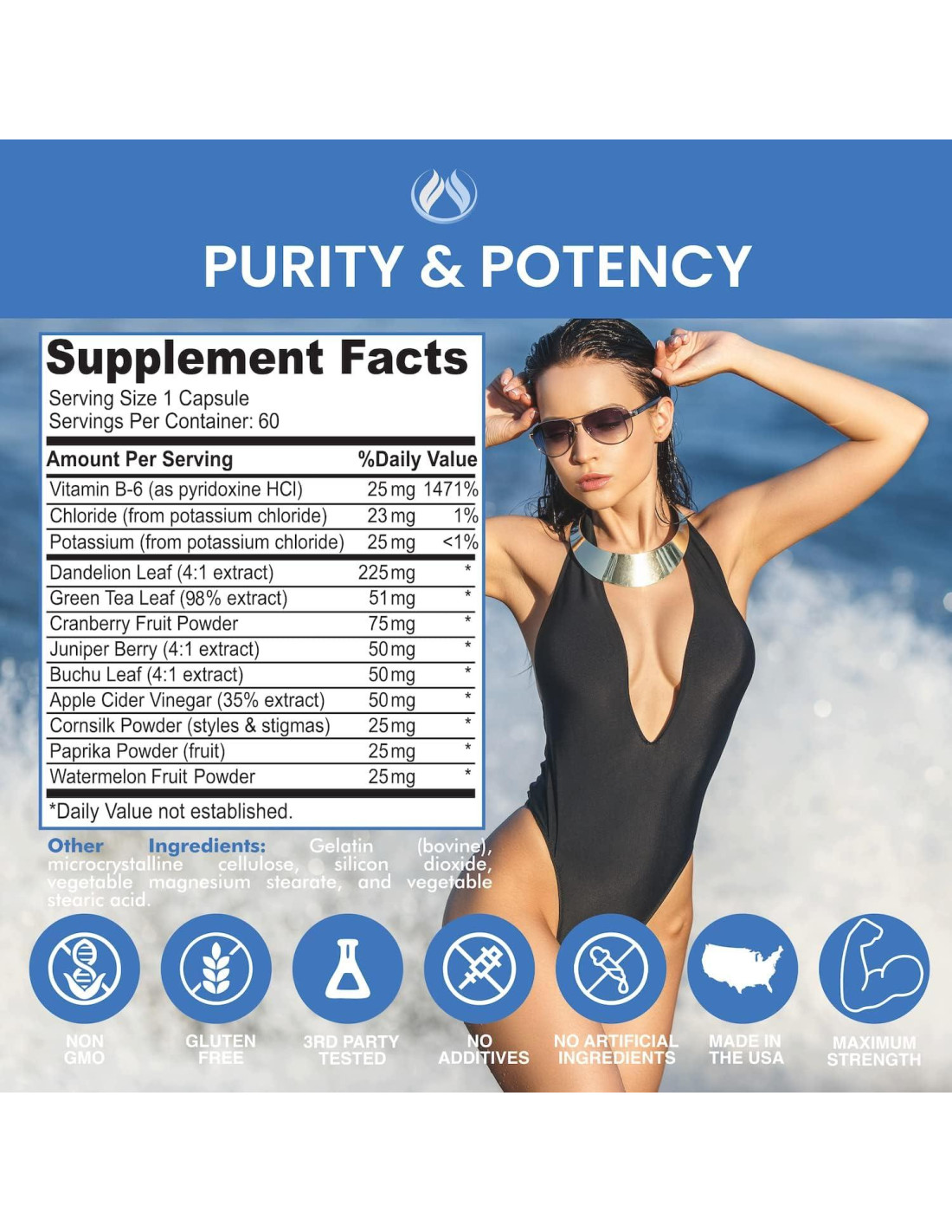 - SUPLEMENTO DE LIMPIEZA SALUDABLE MULTI ÓRGANO Y ALIVIO DE DISTENSIÓN ABDOMINAL: Diurético Rápido y Efectivo para Mujeres y Hombres. Eliminar Fluidos Excesivos con Píldoras de Liberación de Agua Ayuda a Sentirte Más Ligero y Cómodo. Fórmula de Píldoras de Agua para Retención de Fluidos con Vinagre de Sidra de Manzana para Soporte del Metabolismo, Arándano para Salud Urinaria y Potasio para Equilibrio de Fluidos. Un Suplemento de Soporte para Riñones, Limpieza del Hígado, Apoya la Inmunidad, el Estado de Ánimo, la Energía, el Cerebro, la Piel, la Digestión y la Salud del Corazón.
