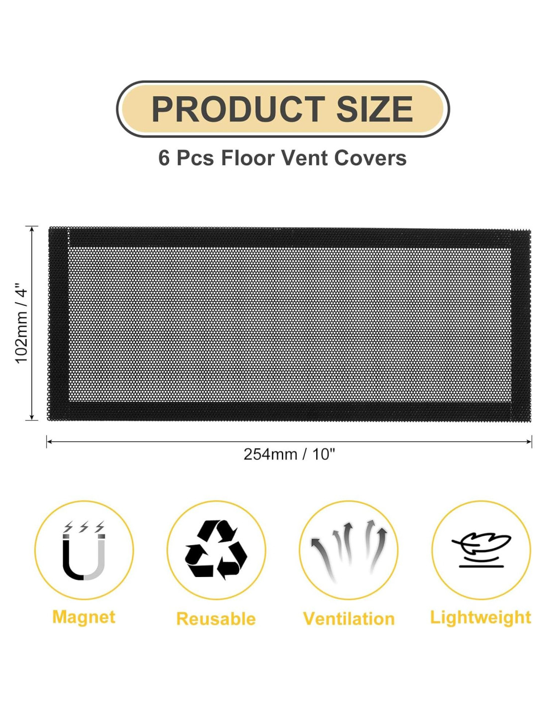 - [TAMAÑO Y EMBALAJE]: El tamaño de la cubierta de ventilación de aire es 254mm x 102mm x 1.5mm / 10" x 4" x 0.06" (L x W x T), y el paquete incluye 6 piezas de cubiertas de ventilación de piso