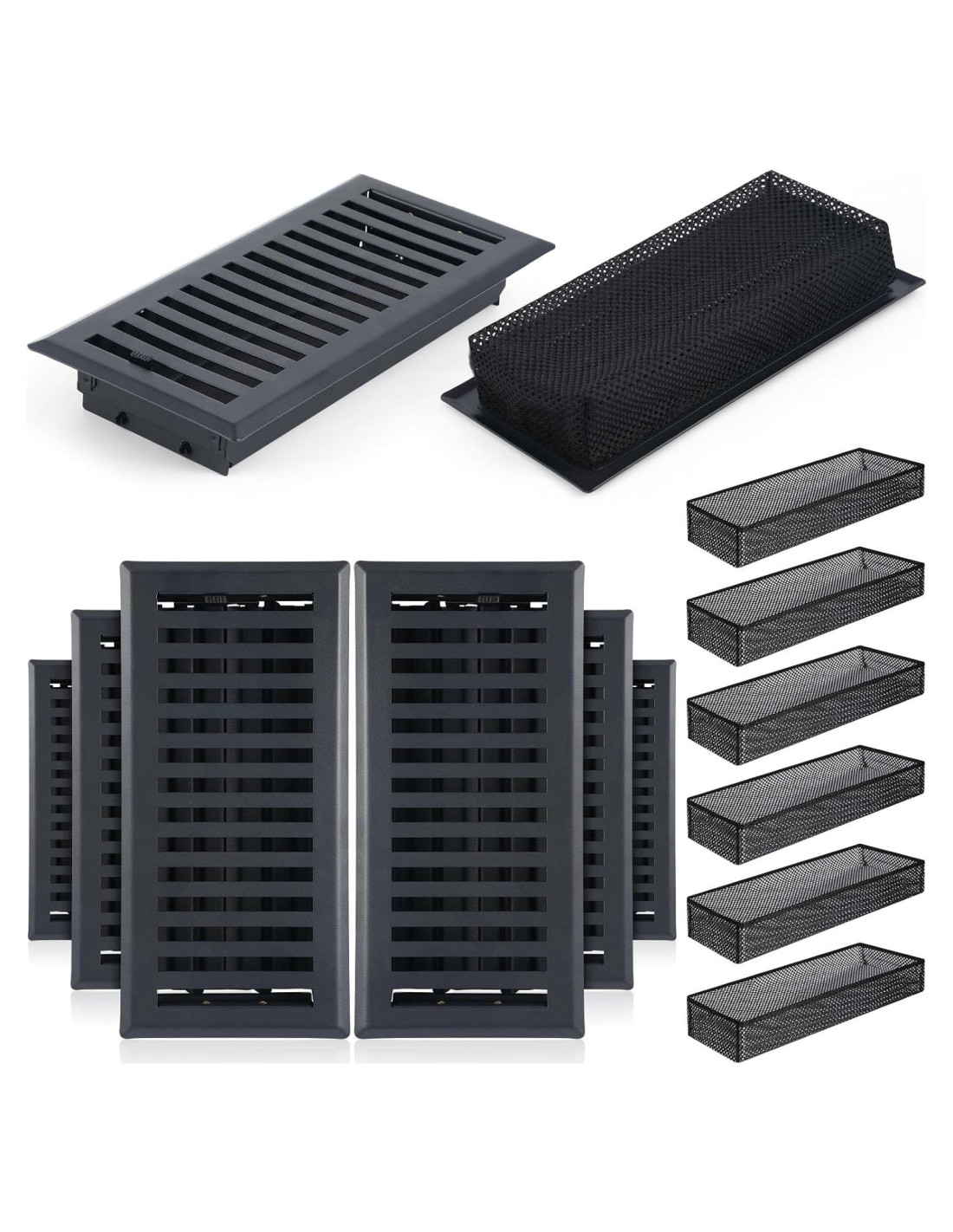 - Cantidad amplia para una cobertura integral: el paquete incluye 6 piezas de rejillas de piso y 6 piezas de cubiertas de malla para ventilación; Asegura que tenga una cantidad suficiente para cubrir múltiples áreas de su hogar u oficina, promoviendo así una circulación de aire constante y un enfriamiento eficiente