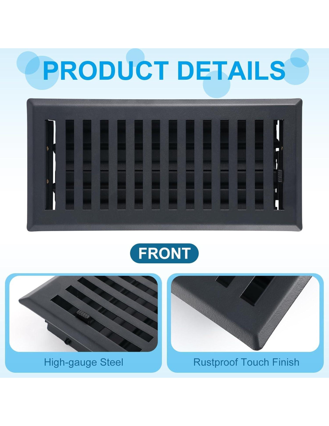 - Tamaño adecuado para funcionalidad: el tamaño de la abertura del conducto de las cubiertas de ventilación para el piso del hogar es de aproximadamente 10.16 x 25.4 centímetros, adecuado para la mayoría de las aberturas de conducto estándar de pisos, paredes y techos; Mejore la comodidad de su espacio y compense las fluctuaciones constantes de temperatura con nuestra solución de ventilación bien diseñada; Por favor, mida la altura y el ancho de la abertura correspondiente en su hogar antes de comprar