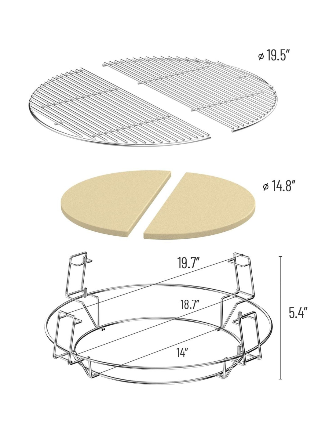 - Compatibilidad: Compatible con parrillas de carbón kettle Weber de 22" y otras parrillas kettle de tamaño similar.